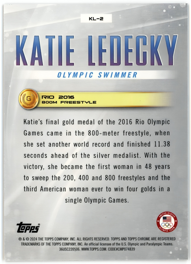 KATIE LEDECKY 2024 Topps Chrome US Olympic PH Ledecky Legacy KL-2
