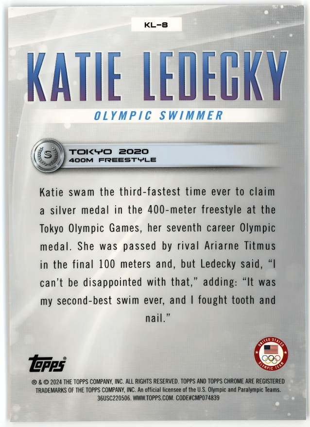 KATIE LEDECKY 2024 Topps Chrome US Olympic PH Ledecky Legacy KL-8