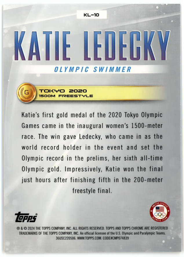 KATIE LEDECKY 2024 Topps Chrome US Olympic PH Ledecky Legacy KL-10