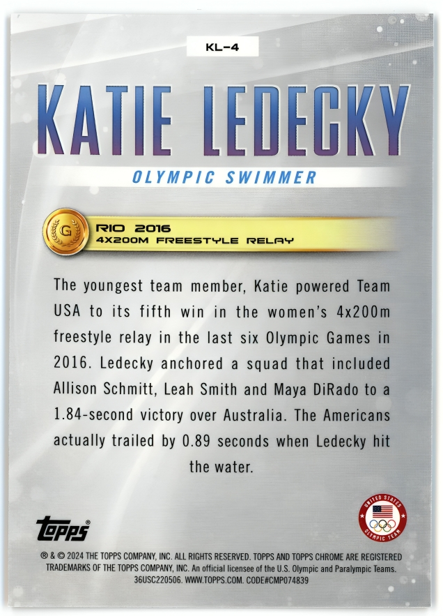 KATIE LEDECKY 2024 Topps Chrome US Olympic PH Ledecky Legacy KL-4