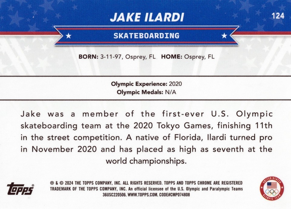 2024 Topps Chrome US Olympic # 124 JAKE ILARDI Blue Refractors /150