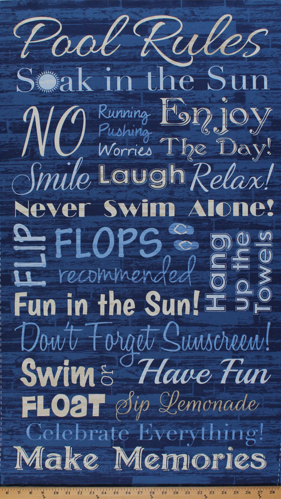 23.5" X 44" Panel Pool Rules Words Summer Cotton Fabric Panel D767.32