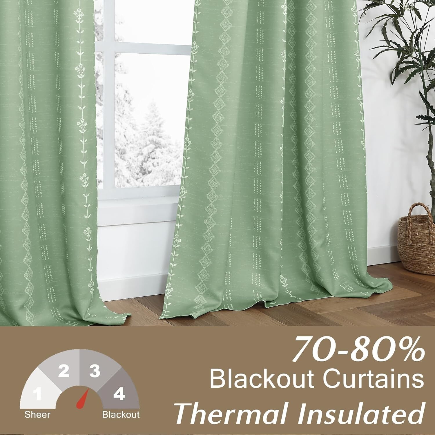 70-80% Blackout: Crafted from medium weight thermal insulating fabric, these room darkening curtains effectively block out sunlight and winter chills. Ideal for creating a dark environment and warm living room and bedroom in cold weather.Please note they are not heavy lined drapes or 100% blackout curtains.