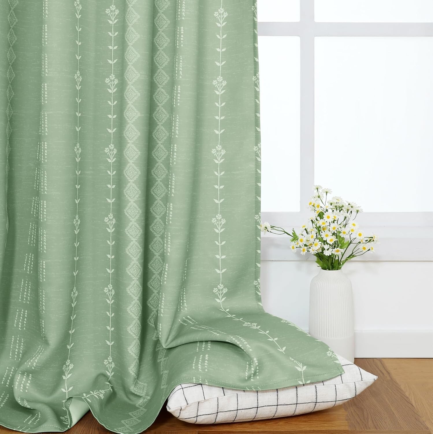 Light Green Curtains Neutral Boho Sage Patterned Blackout set of 2 96"L x 50"W