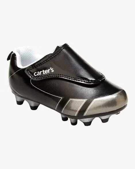 Carters Fica LITTLE BOYS Hook Loop Soccer Cleats Sneaker Black/Silver BRAND NEW