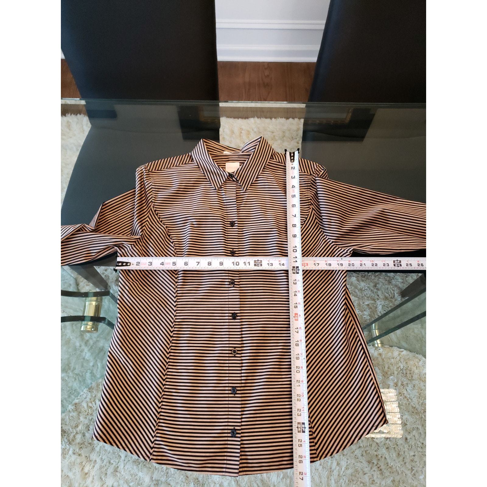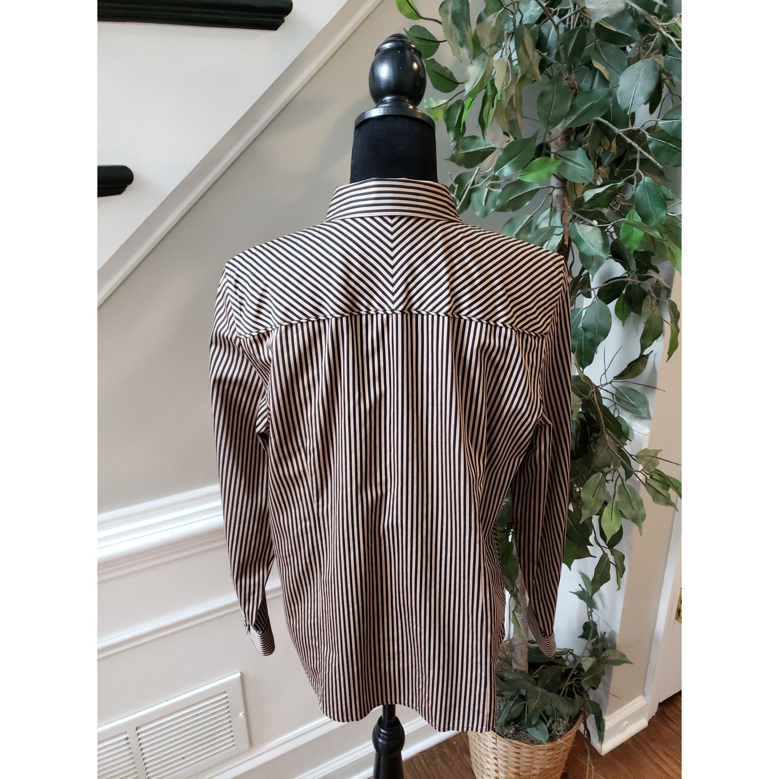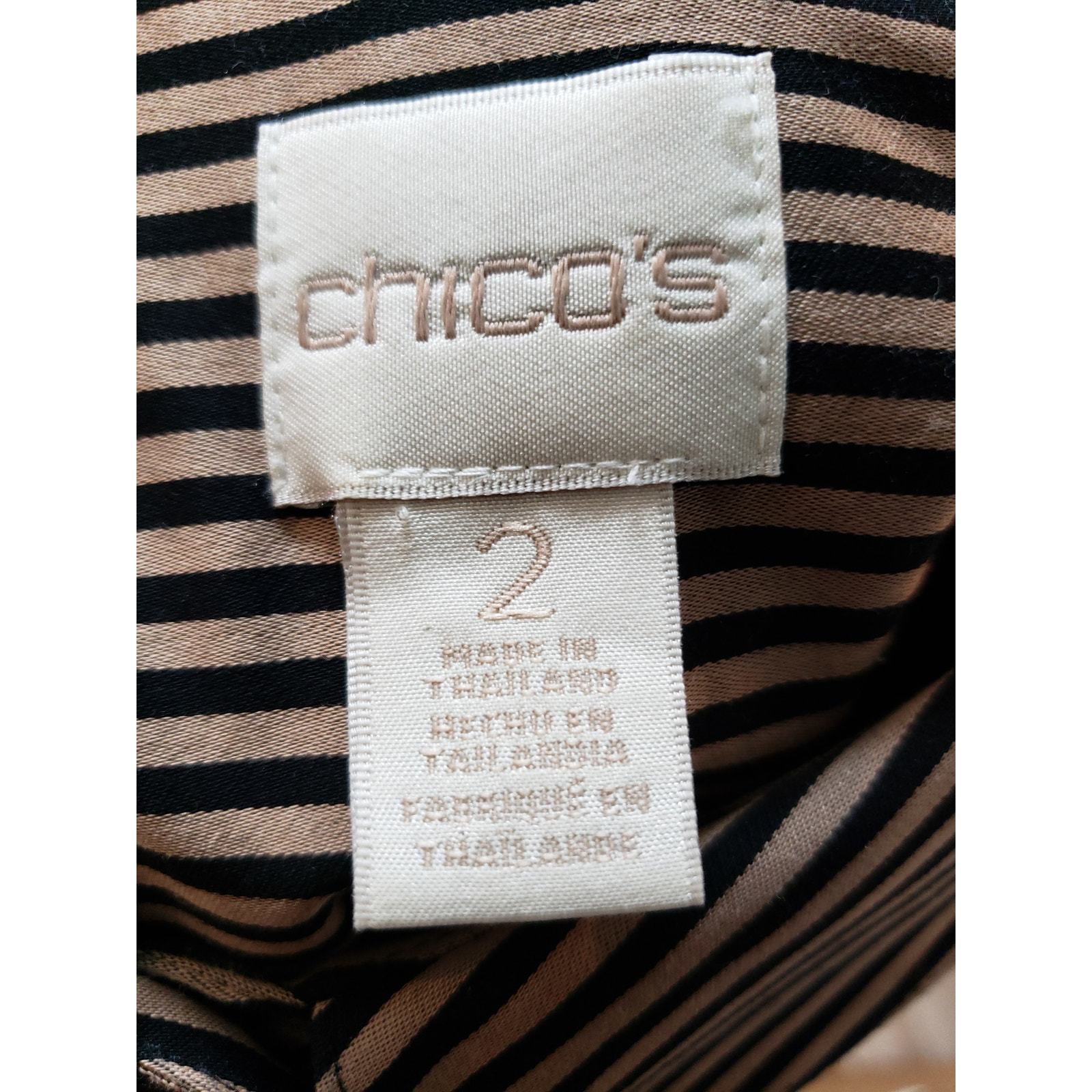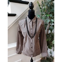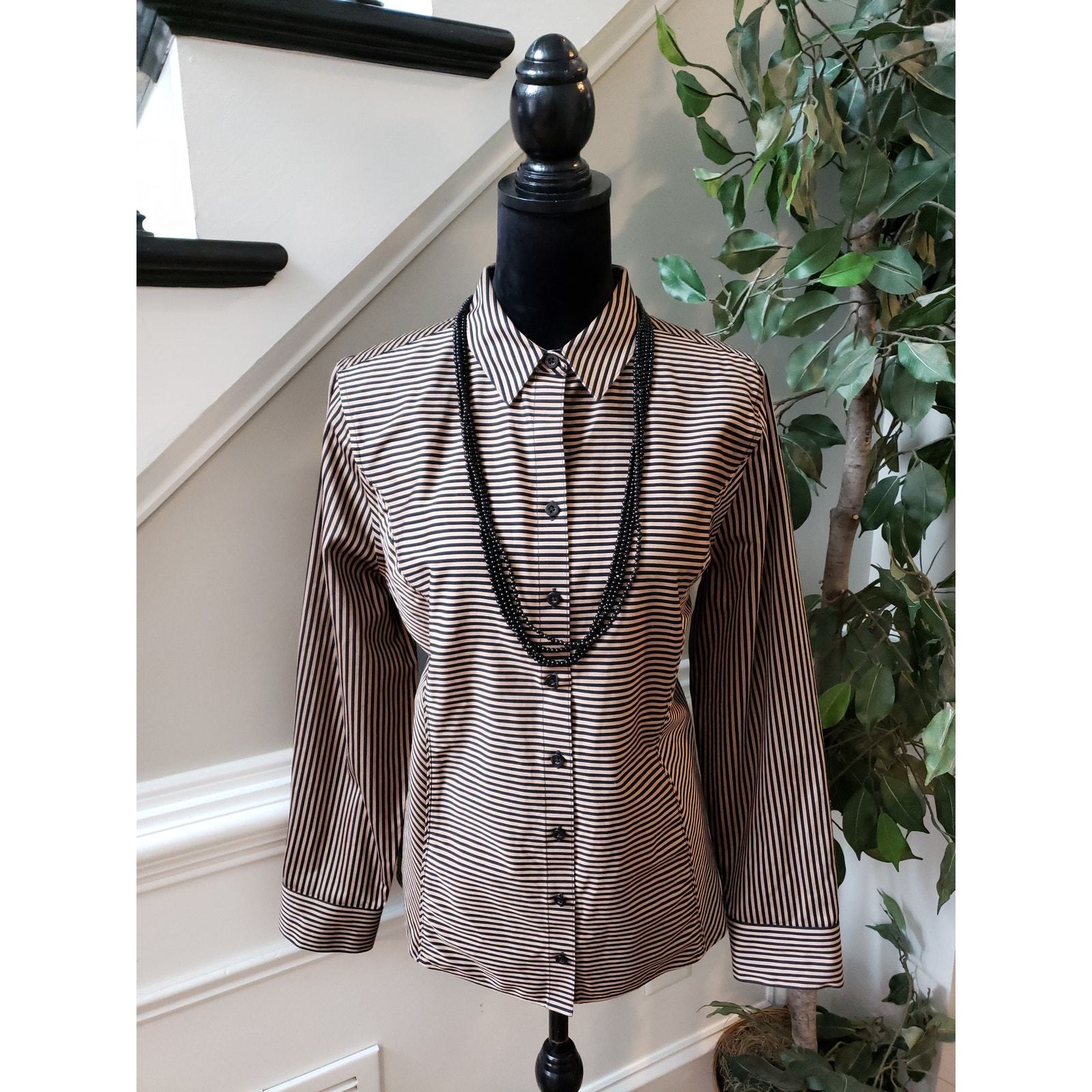 Chico's Button Down Blouse Womens 2 Large Black Tan Striped Long Sleeve Shirt