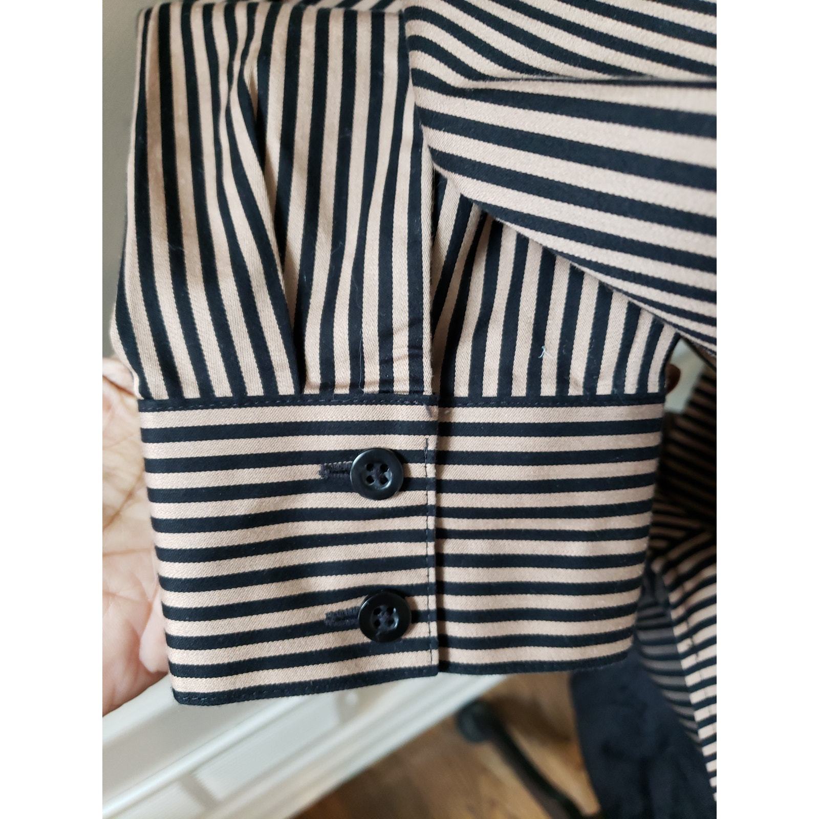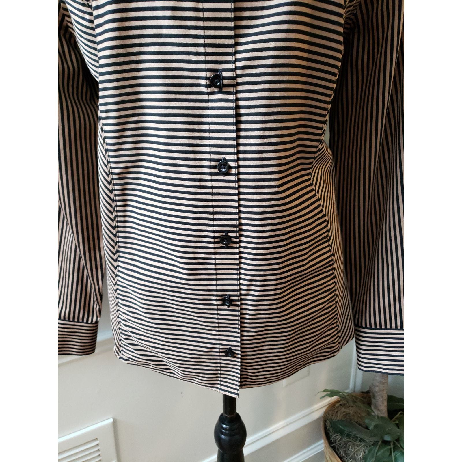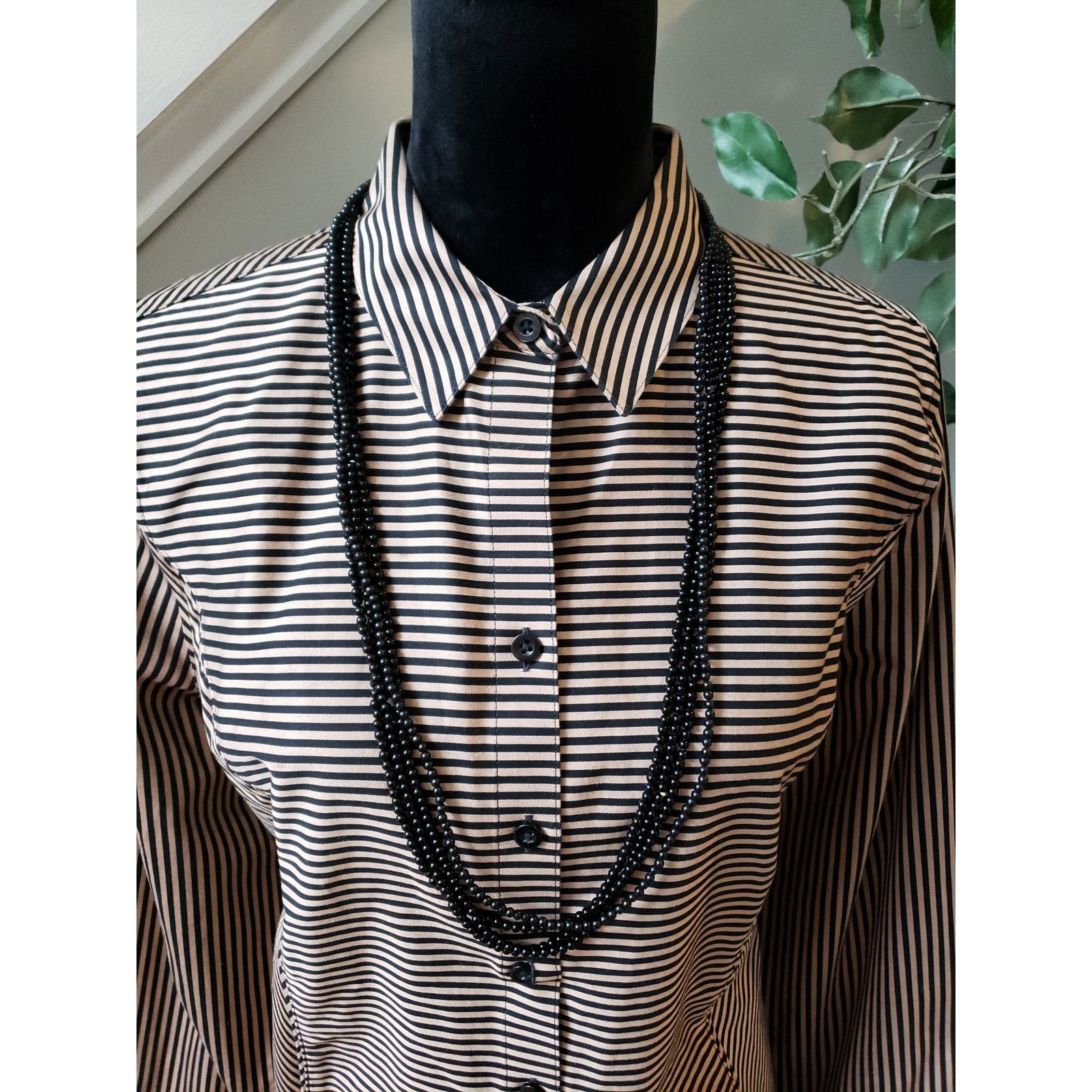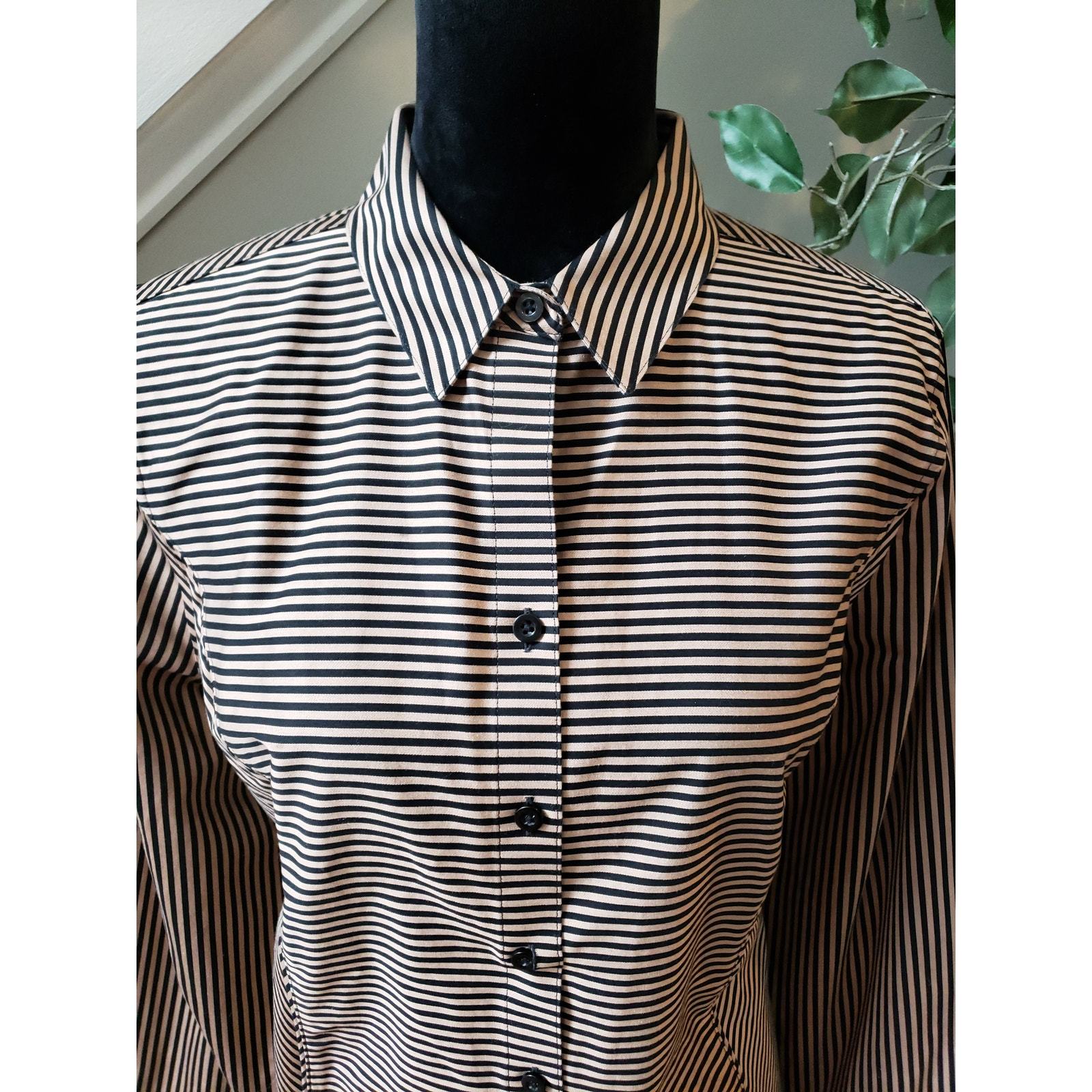 Chico's Button Down Blouse Womens 2 Large Black Tan Striped Long Sleeve Shirt