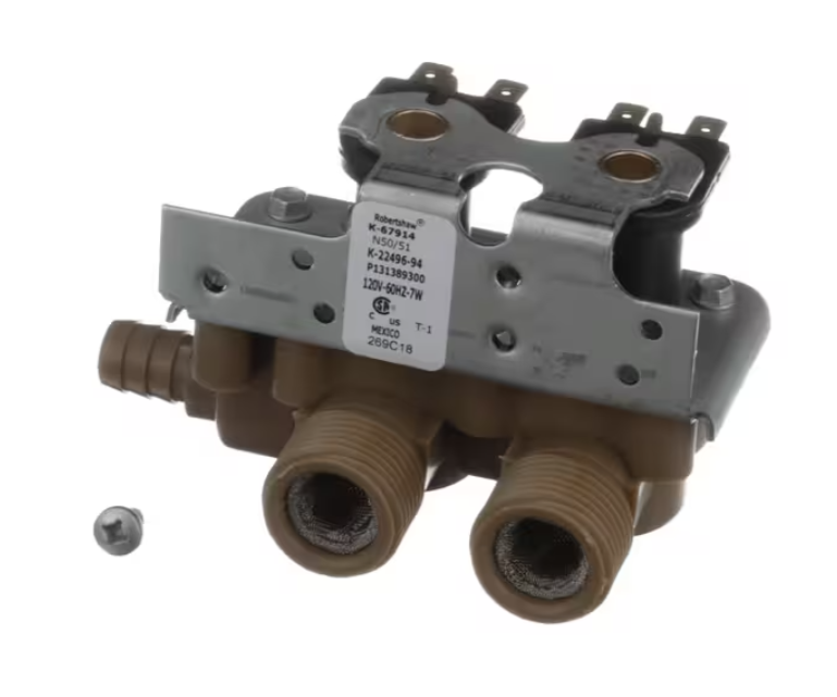 Replace your worn or leaking inlet valve with the dependable Frigidaire K-67914 Solenoid Valve to keep your washer running smoothly and efficiently.