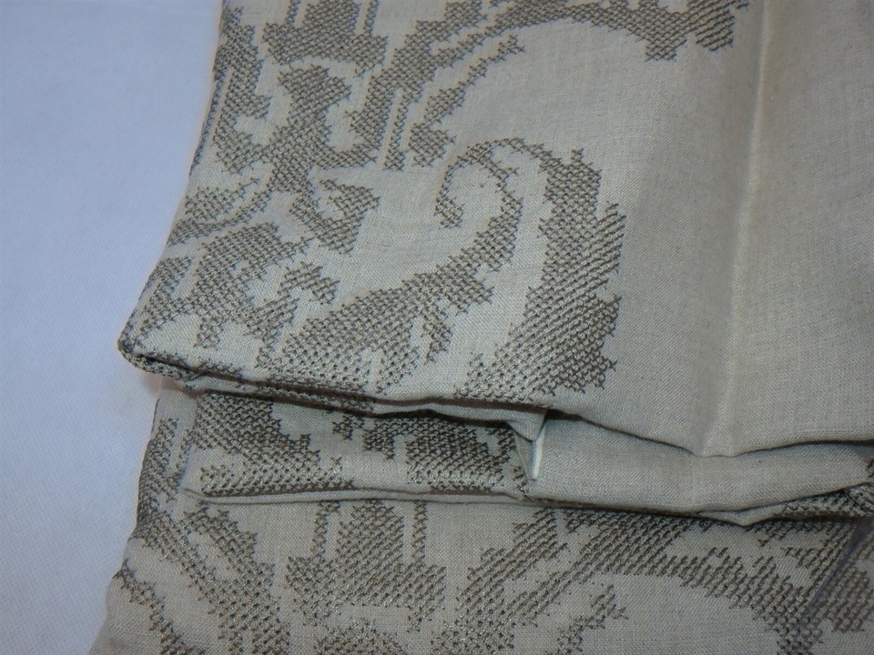 Ann Gish Queen Jacquard Cross Stitch Linen Duvet Cover Taupe NIP