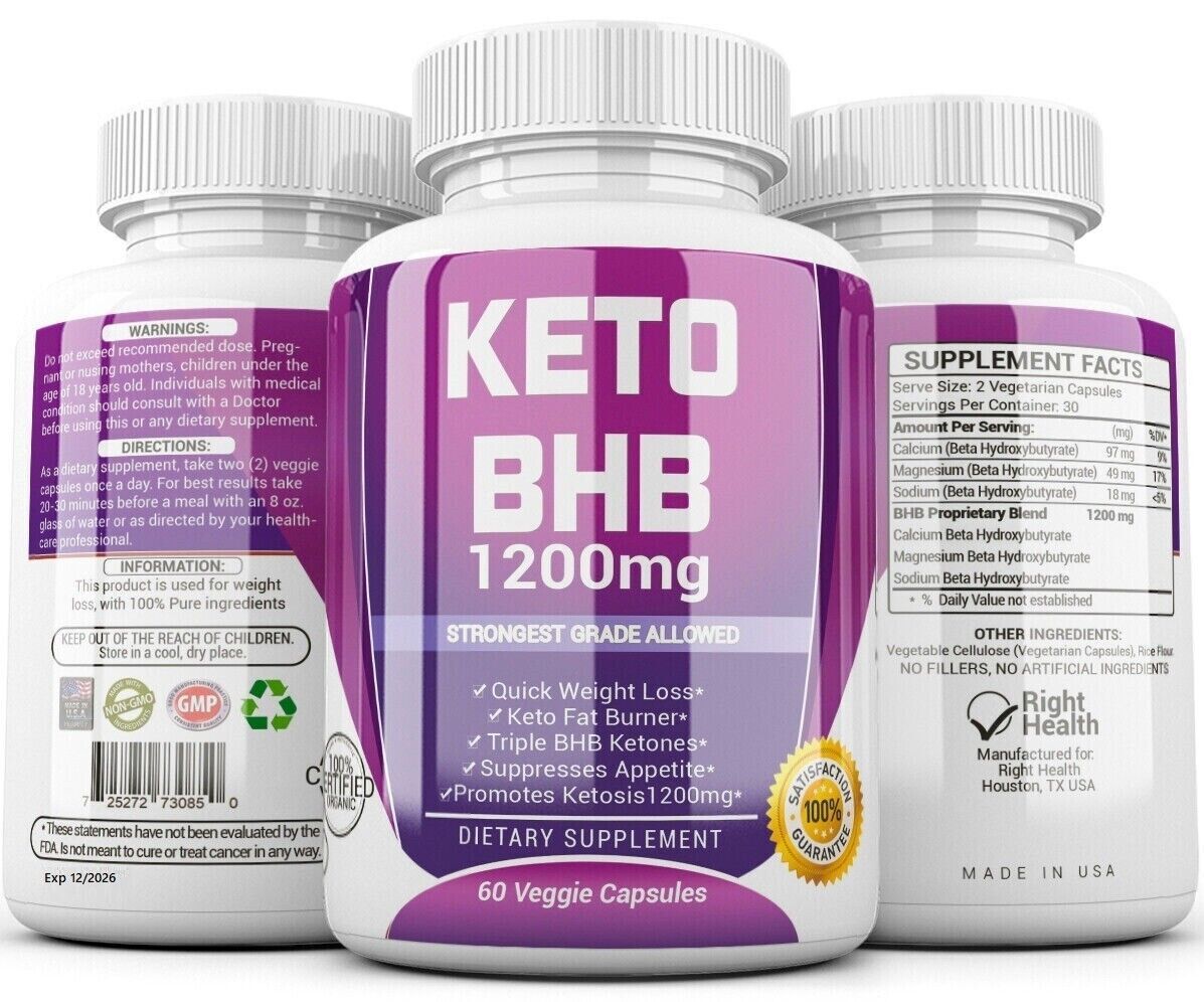 2 Pack Keto BHB 1200mg Pure Ketone Fat Burner Rapid Weight Loss Pills Ketosis