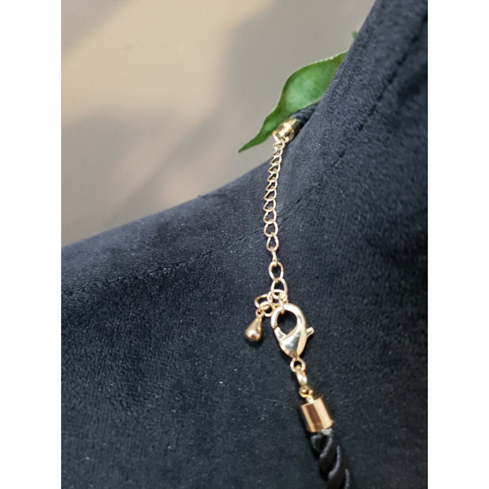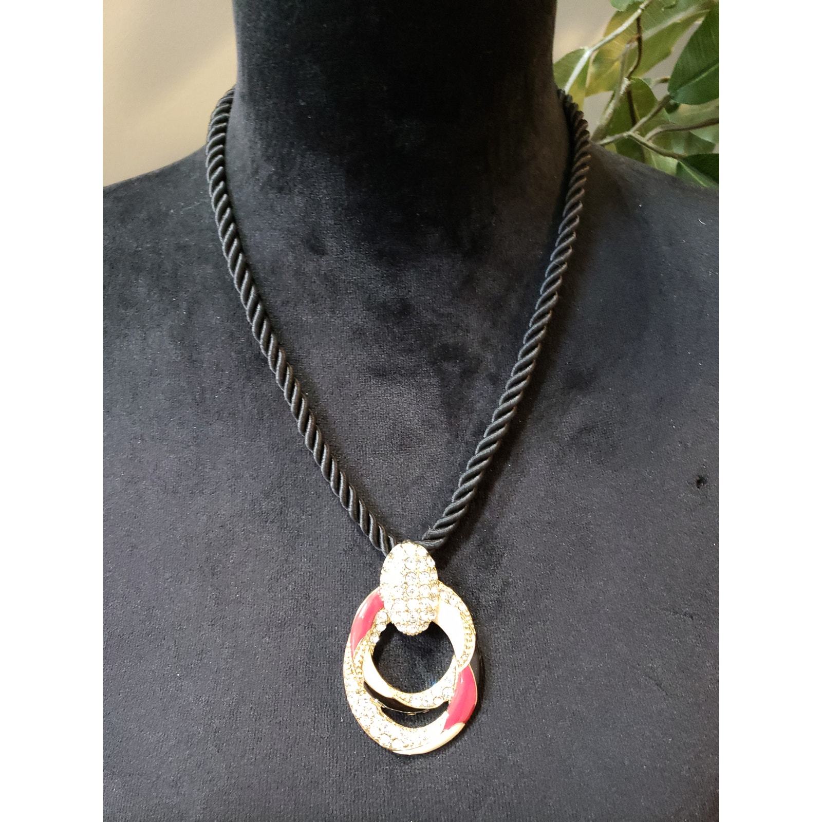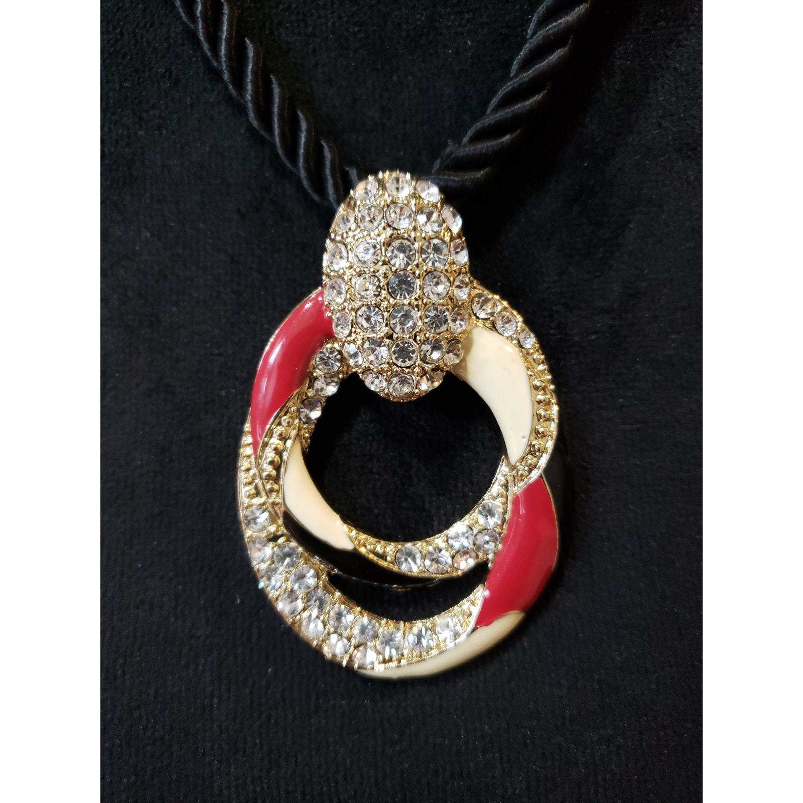 Women's Statement Pendant Necklace Black Rope Chain Gold Crystal Red Accents