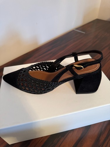 Martinez Black Woven Leather Suede Slingback Shoes SZ 6 Spain NIB