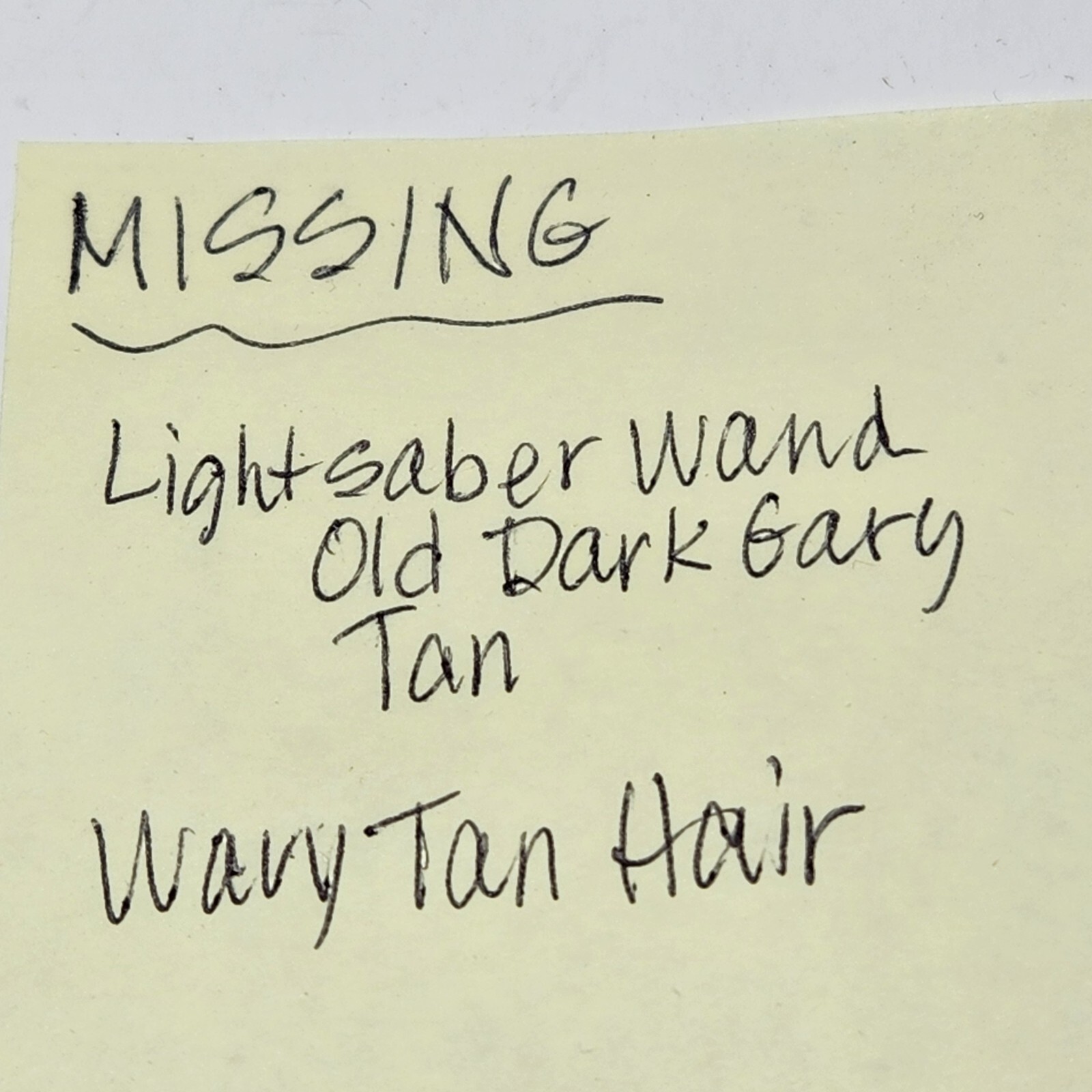 Missing: Lightsaber old dk gray + tan, wavy hair