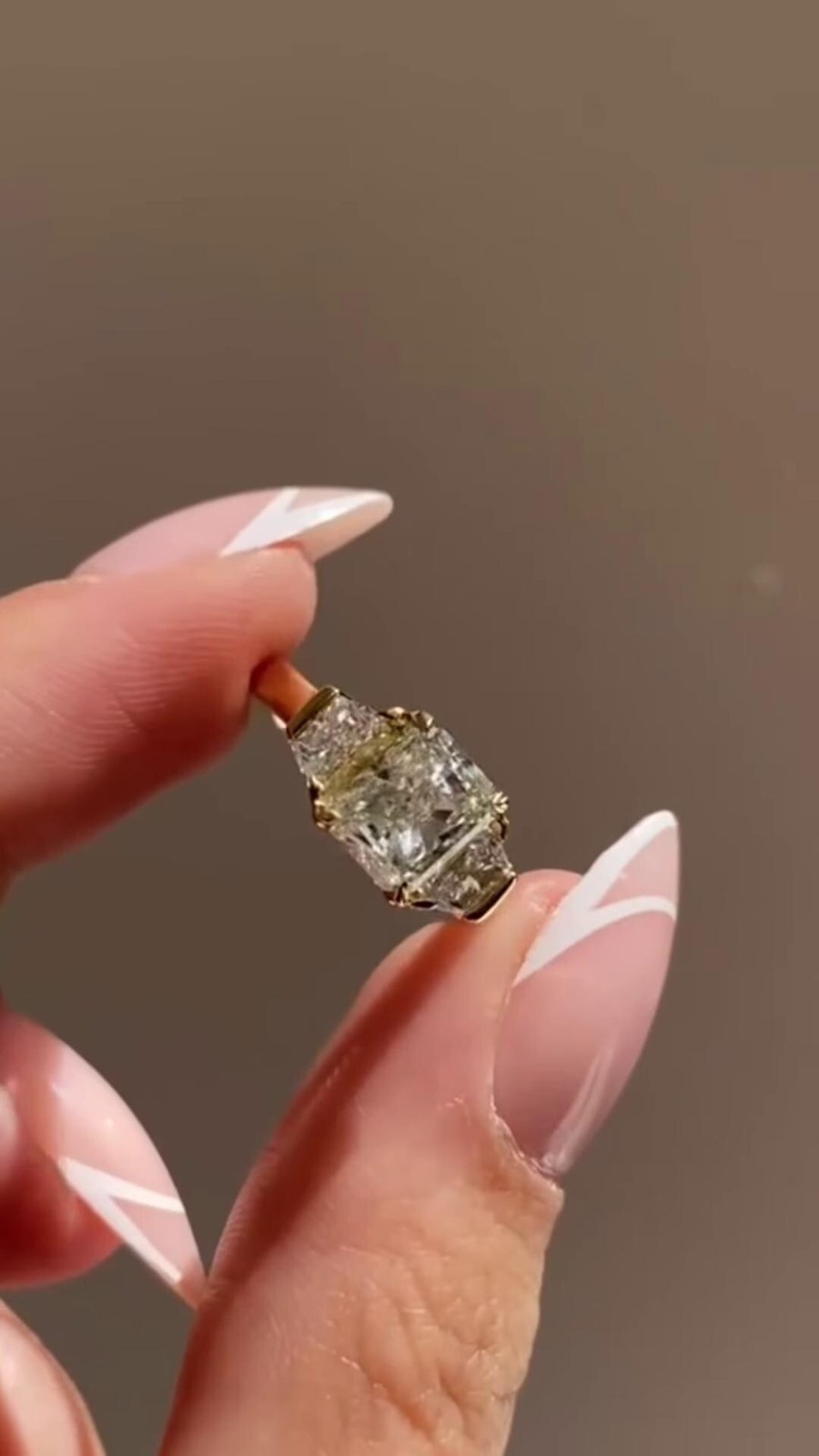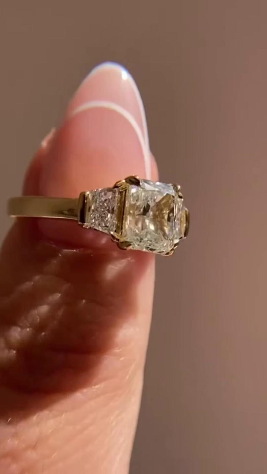 Elevate your love story with our stunning 2.50 Ct Moissanite Diamond Engagement Ring, masterfully set in 14k gold. Featuring a radiant cut center stone flanked by .25 ct trapezoid side stones, this ring embodies timeless elegance and exceptional brilliance, making it the perfect wedding or anniversary set.