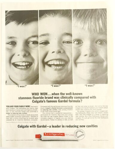 1964 Colgate Toothpaste Advertisement Dental Hygiene Gardol Fluoride HM2CC