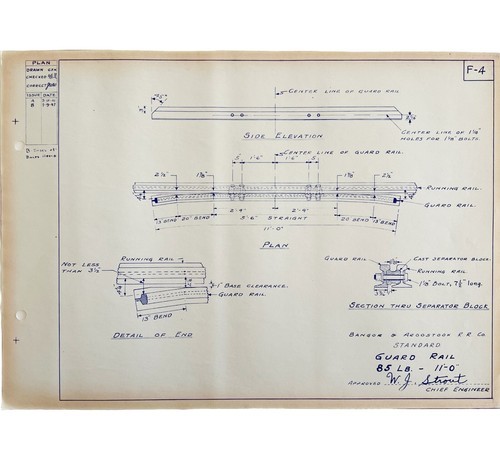 1947 Railroad Bangor Aroostook Standard Rail 85 Pounds Blueprint F4 Train DWDD15