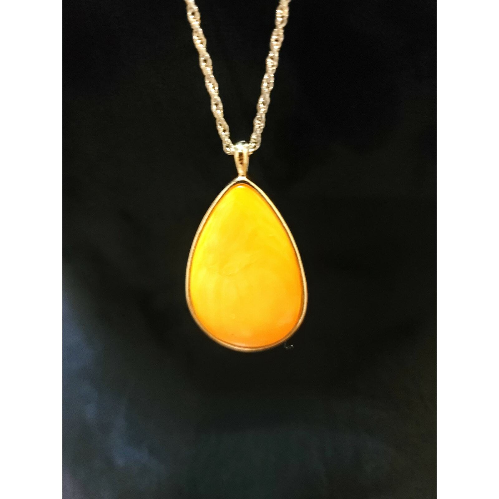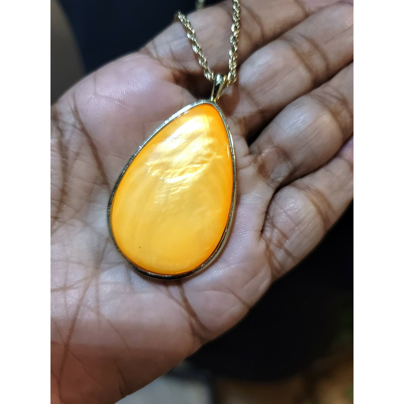 Women's Long Pendant Necklace Lobster Clasp Gold Chain Orange Teardrop Charm