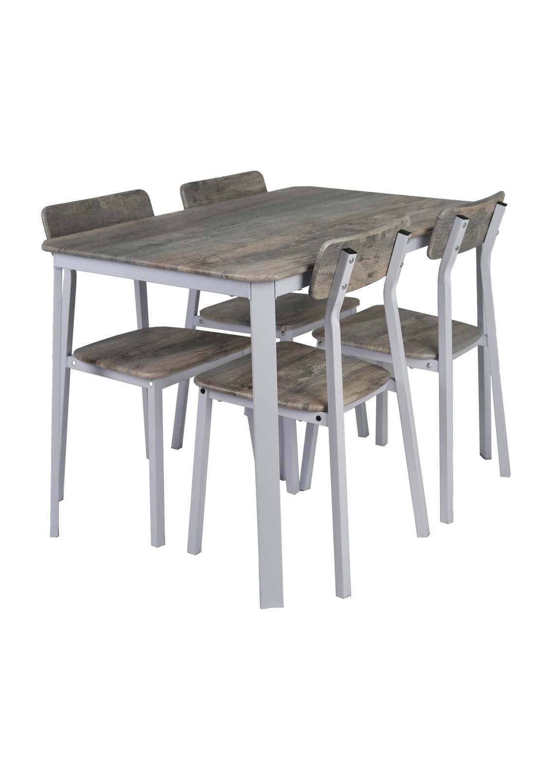 Modern dining table set for 4 people: The kitchen table and chair set is wood-paneled in realistic wood grain, adding an idyllic, natural atmosphere to the space. This 5-piece dining table set is mainly in grey and white, perfect for different home styles.