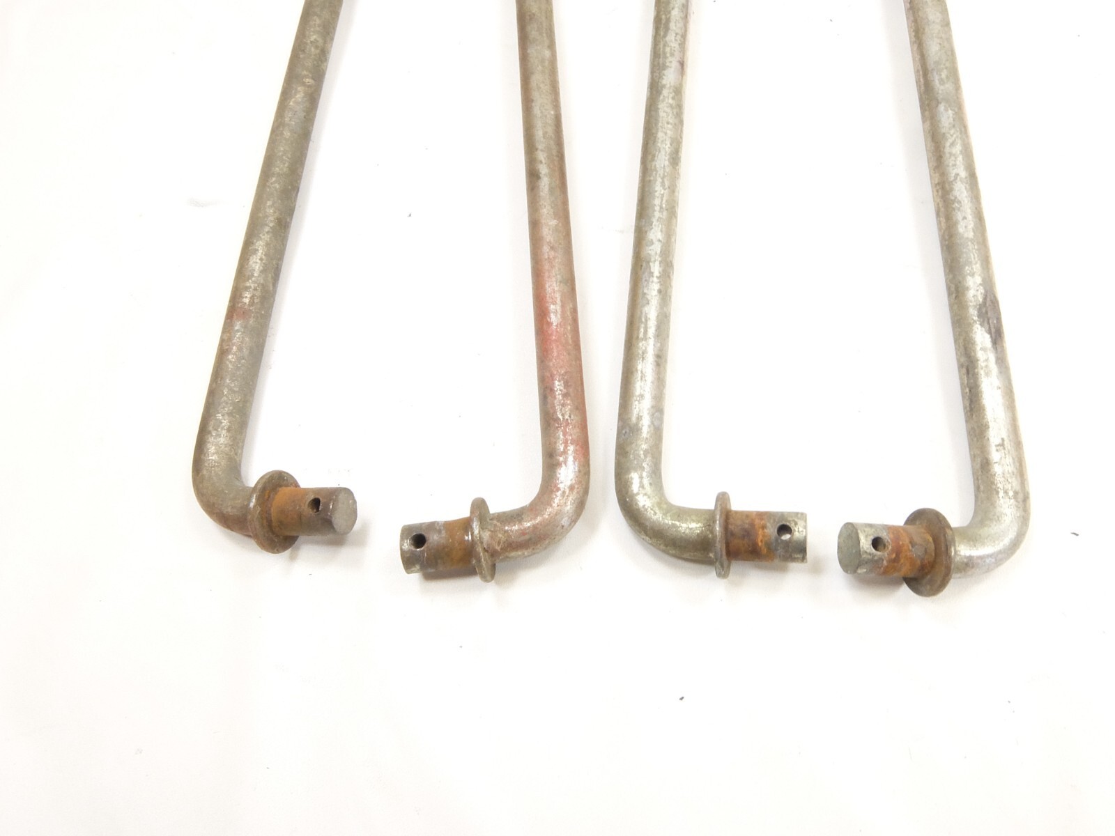 This is a set of 4 trunnion assemblies that were removed from the unit below. There is paint overspray on them along with light rust scuffs common on used parts.