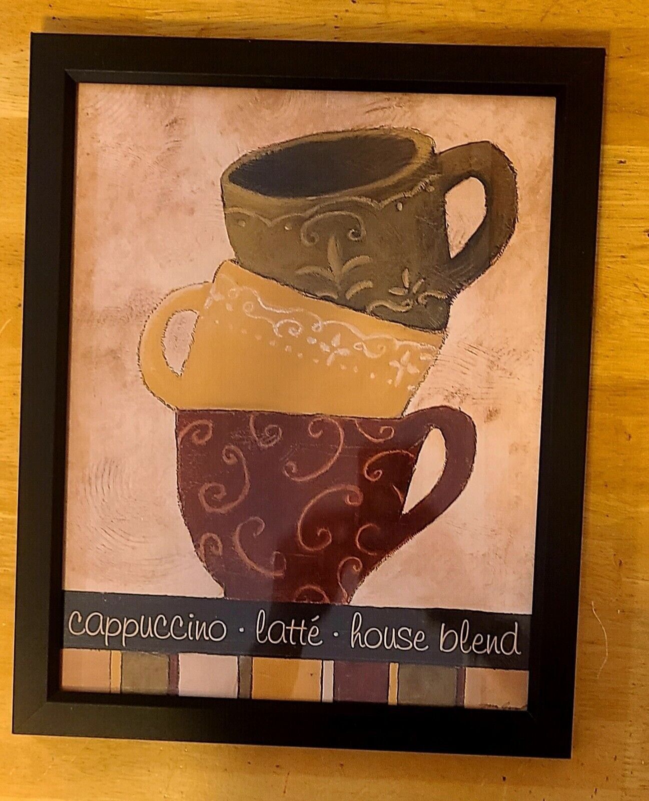 Coffee Espresso Cappuccino Art Print Latte Matted Frame 12.5 X 15.5 Glass Front