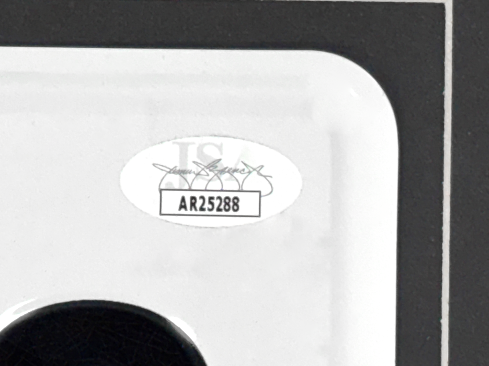 The autograph is certified authentic by James Spence Authentication (JSA) ? one of the most trusted third-party authentication companies in the industry. Each signature includes a tamper-evident sticker and a matching certificate of authenticity, all trackable through the authenticator?s official database.