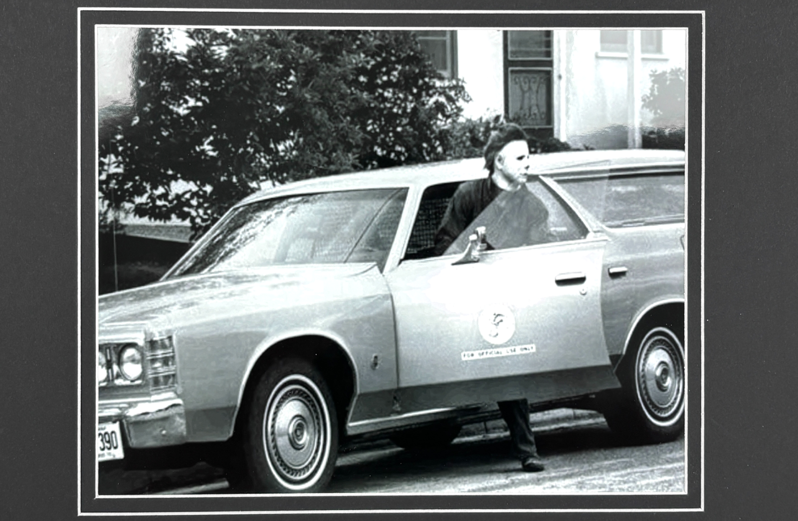 An 8x10 photo and (2) 4x6 photos from Halloween, including the iconic scene where Michael steals the car from the asylum ? the same scene where this license plate appears. Also, a fight photo with Laurie Strode (Jamie Lee Curtis) and an awesome full body picture of Michael at the top of the stairs.