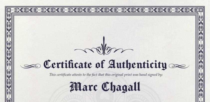 Certificate of Authenticity by Art National Gallery.