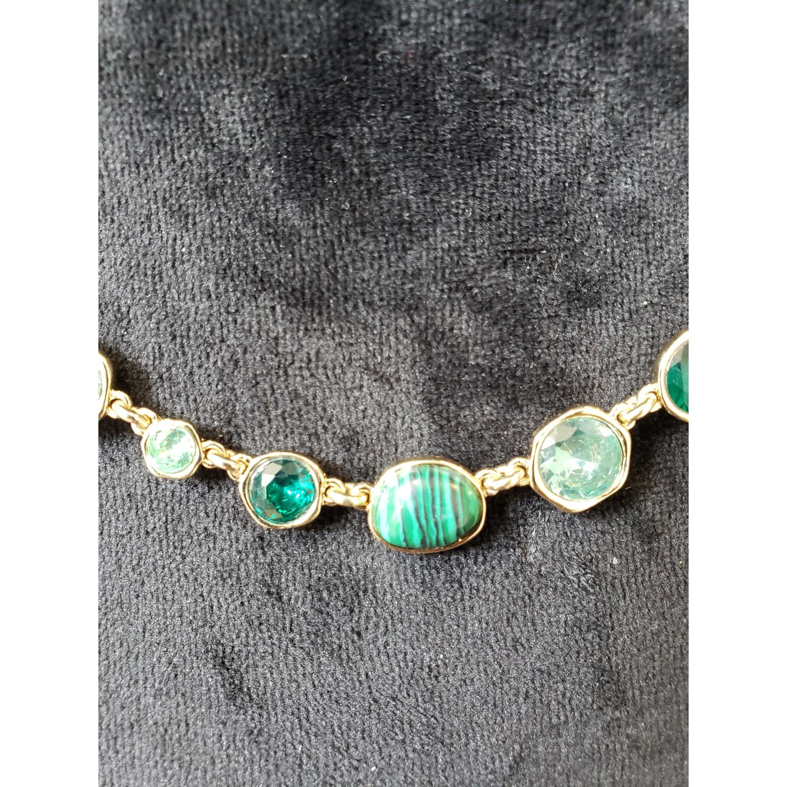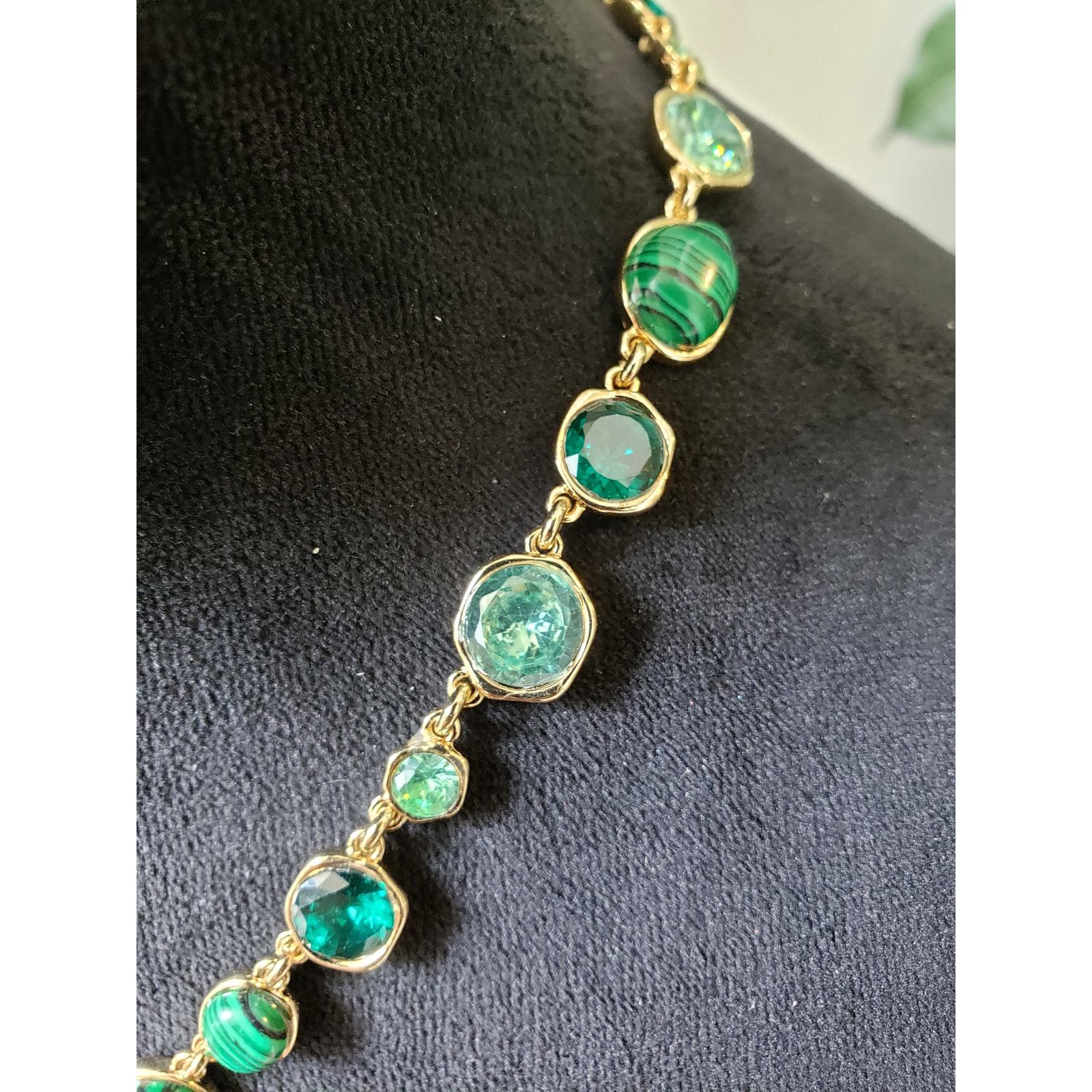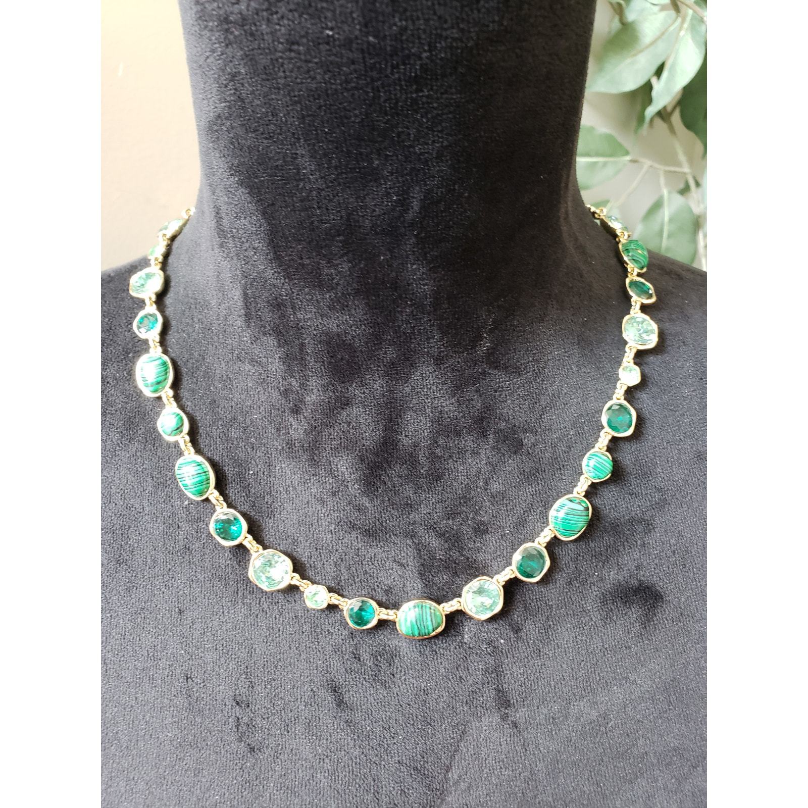 Women's Green Malachite Style Gemstone Necklace Gold Chain Lobster Clasp