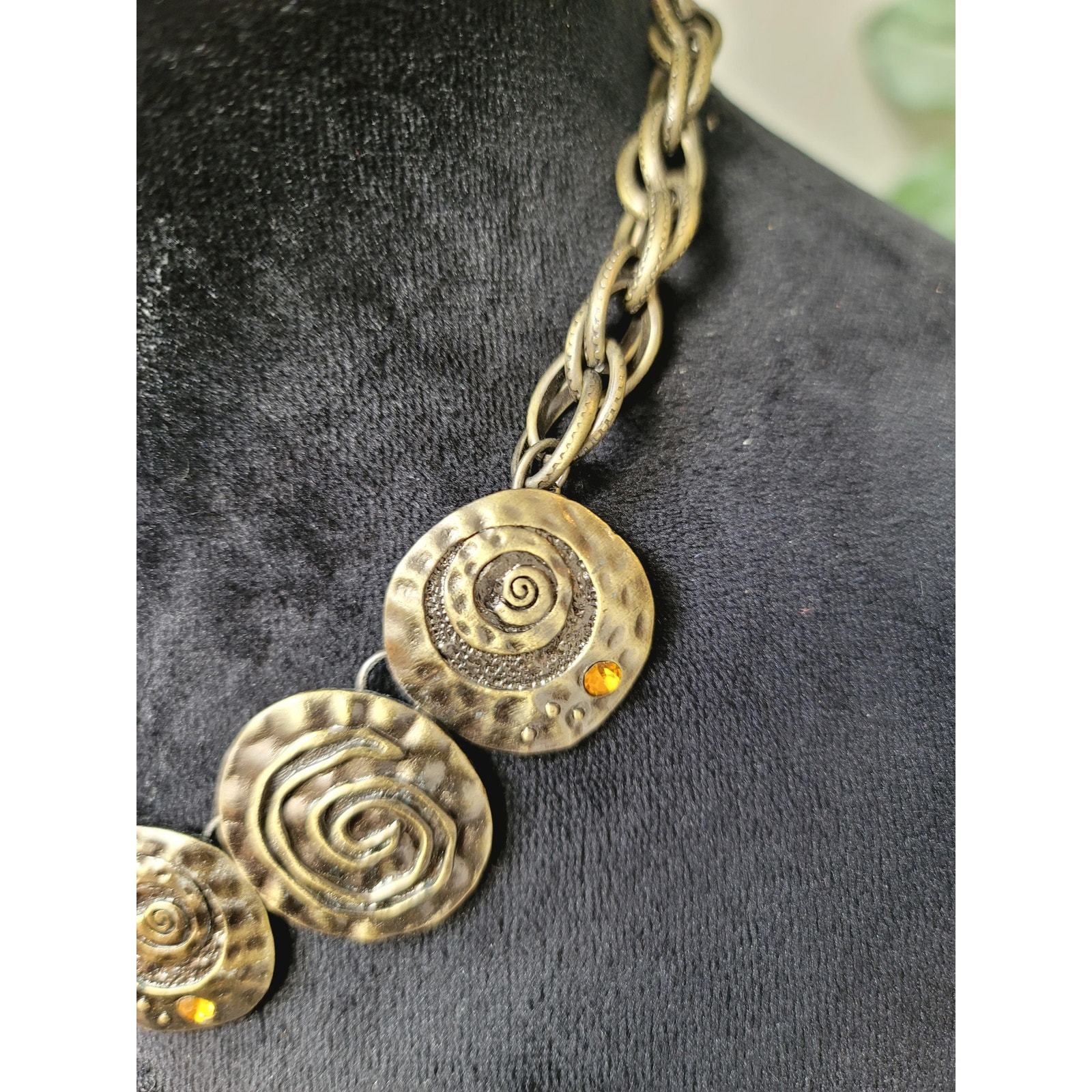 Women's Bronze Spiral Disc Necklace with Link Chain and Lobster Clasp