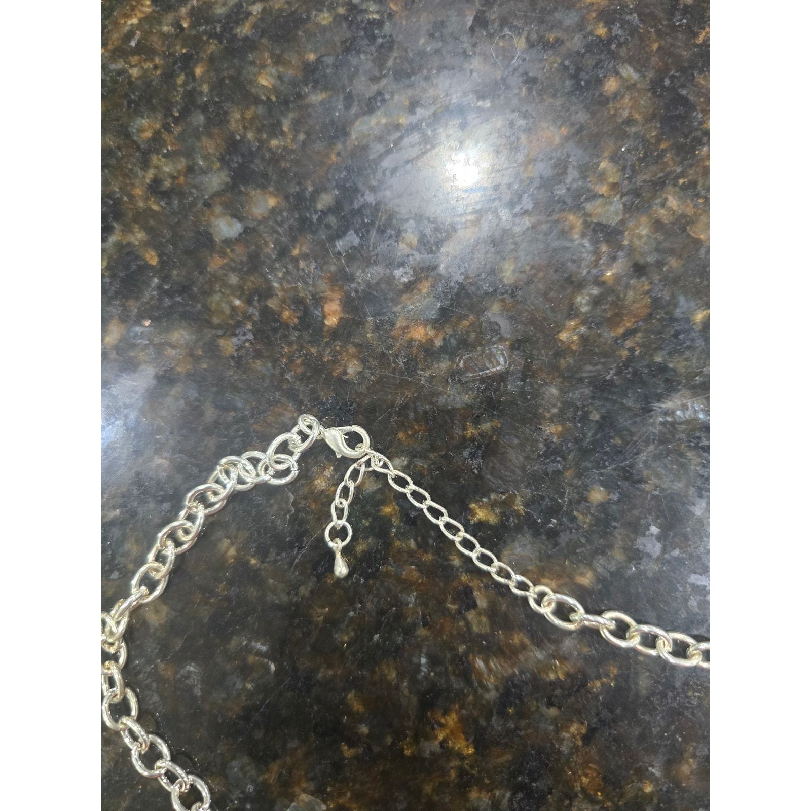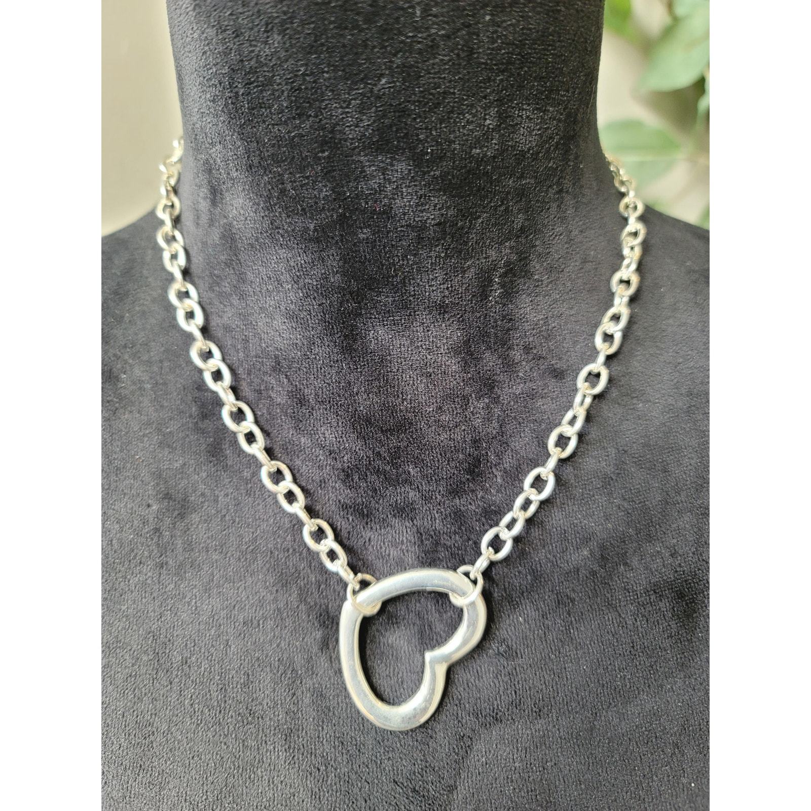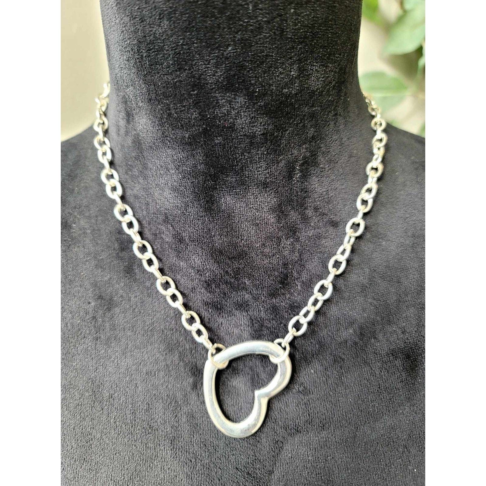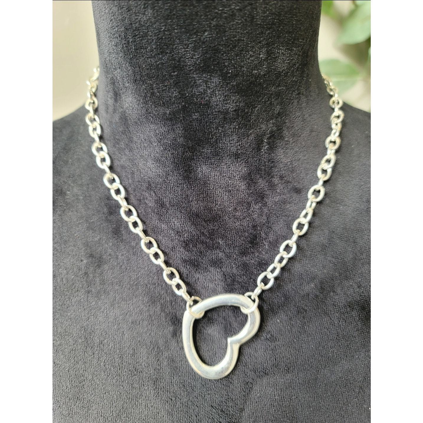 Women's Silver Tone Link Necklace with Heart Pendant and Lobster Clasp