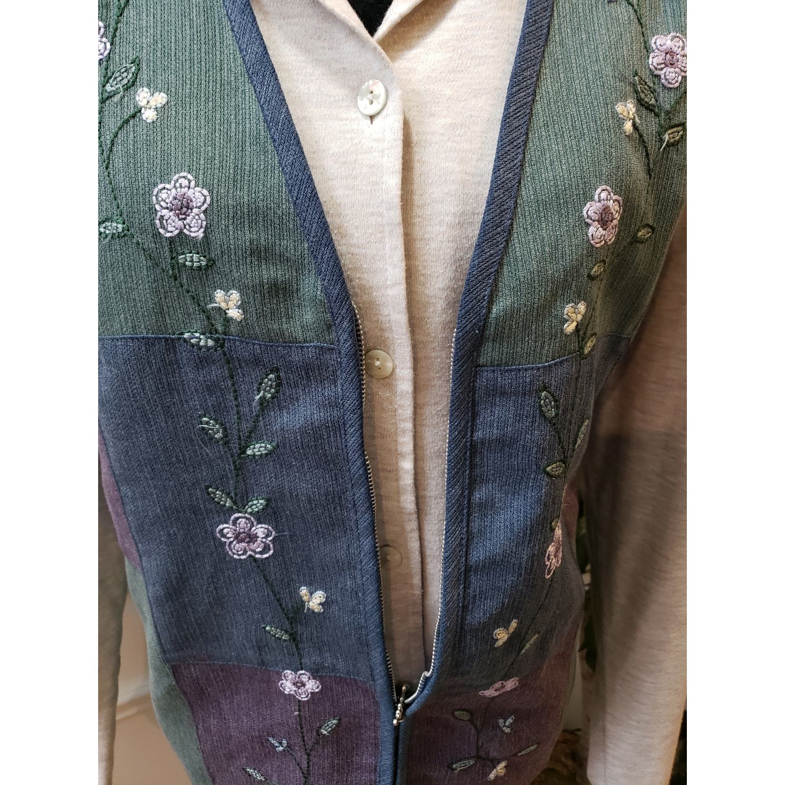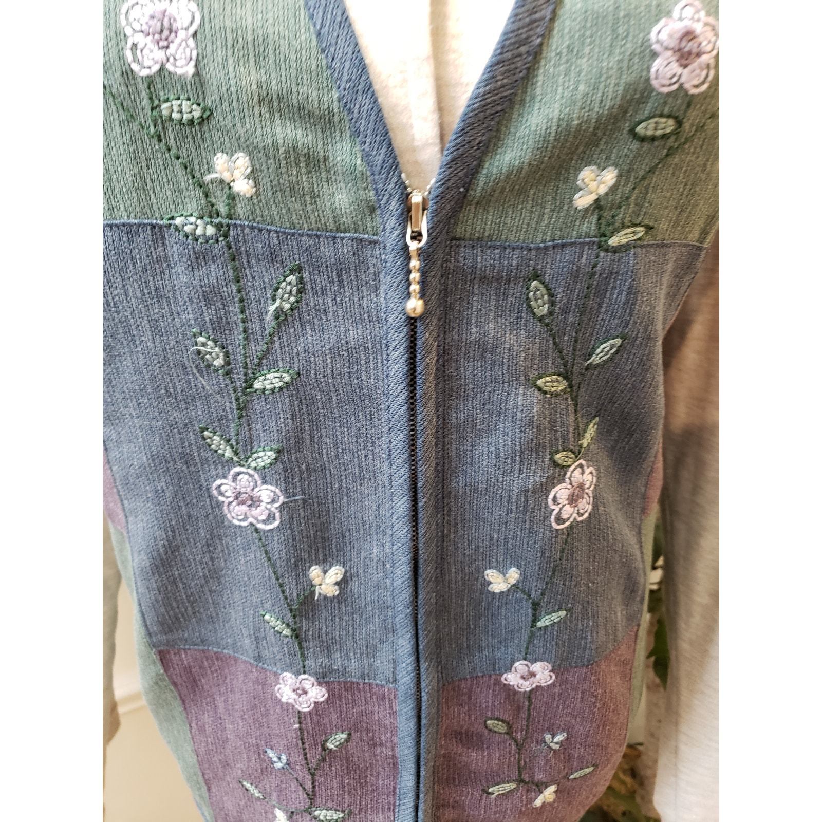 Alfred Dunner Women's Size L Embroidered Zippered Cardigan Green/Blue