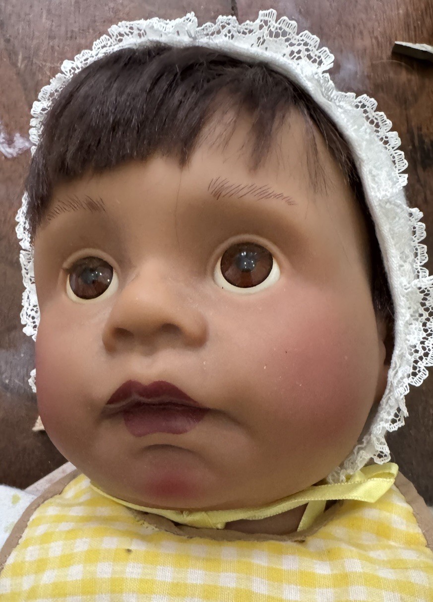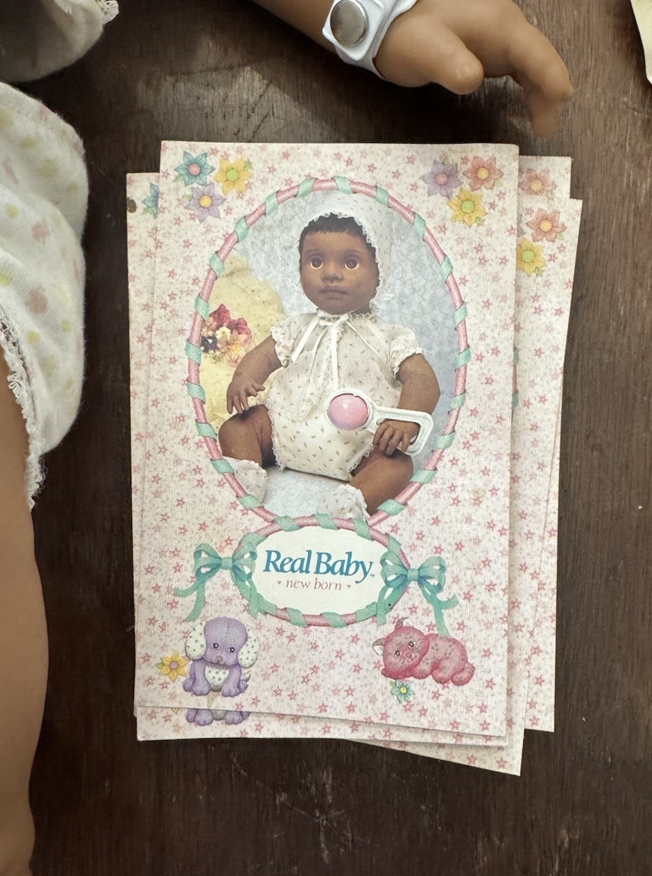 1986 Hasbro baby doll, Real Baby Judith Turner, vintage newborn doll, 80s doll collectible, realistic baby doll, lifelike vinyl baby, Real Baby doll African American, Hasbro original booklet