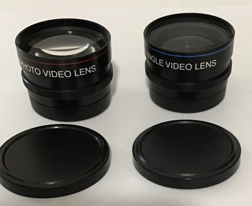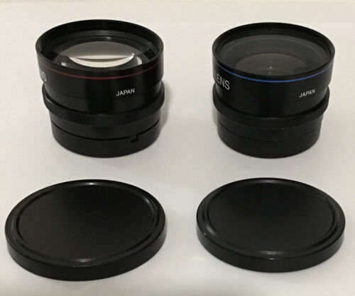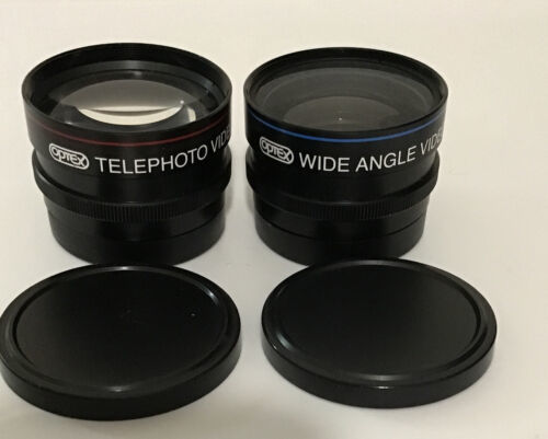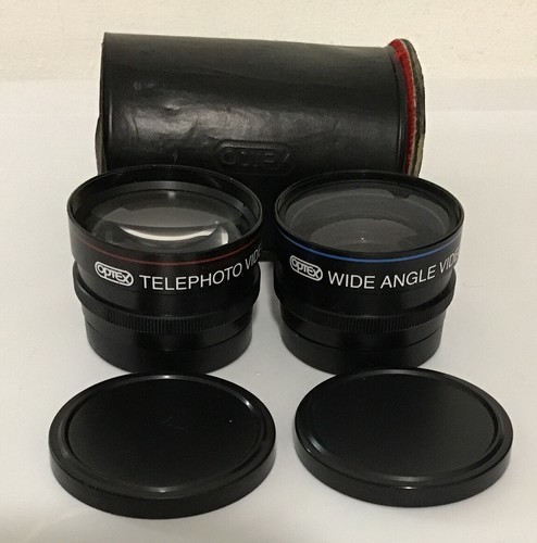 Optex Wide Angle Telephoto Video Lenses Used 2 Pack w/ Leather Case Lens Caps. Condition is Used. Shipped with USPS Priority Mail.