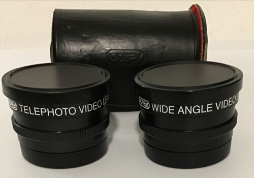 Optex Wide Angle & Telephoto Video Lenses Used 2 Pack w/ Leather Case Lens Caps