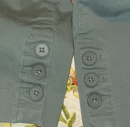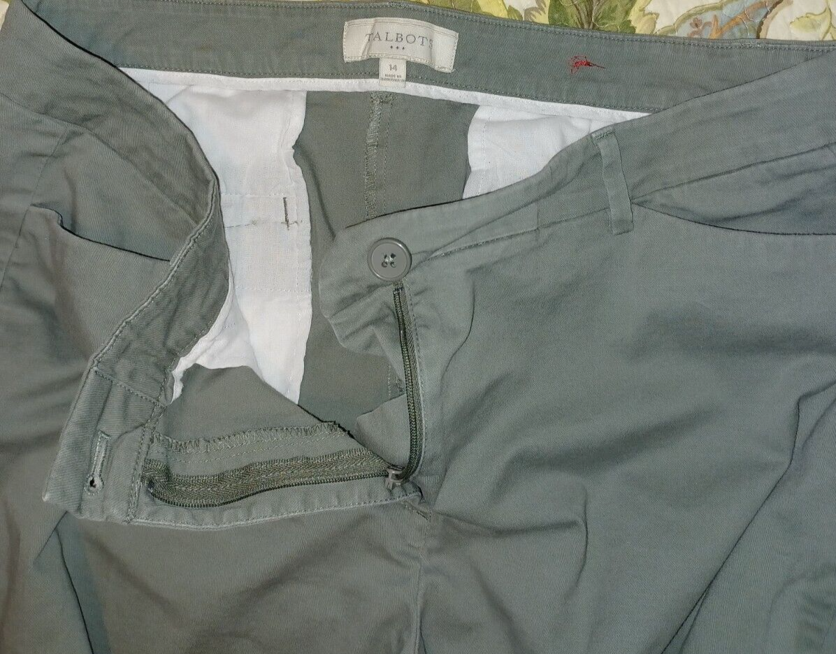 Talbots Pants Women's 14 Capris Button Hem Detail Stretch Olive Green