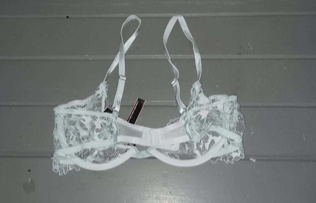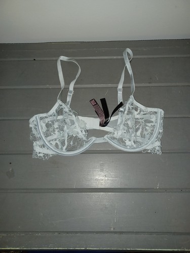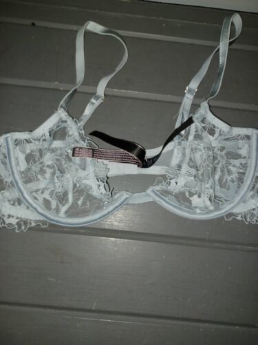 Victoria's Secret Light Blue Lace Low Cut Demi Bra Unlined Sheer Sexy Size 34C