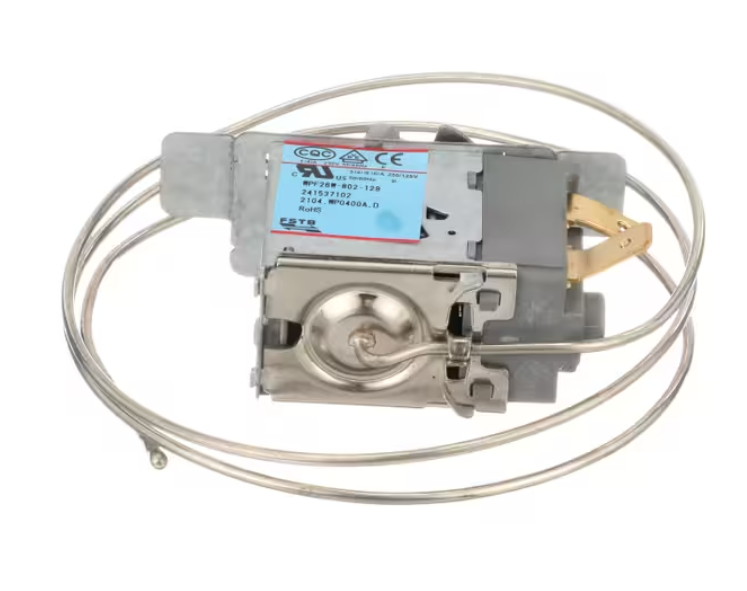 The Frigidaire WPF26W-802-129 Temperature Control Thermostat (part number 241537102) is a genuine OEM mechanical temperature controller for upright freezers and side-by-side refrigerators. This thermostat regulates the internal freezer temperature by cycling the compressor on and off based on your selected setting. If your freezer is too warm, too cold, or not running at all, replacing the temperature control may solve the issue.