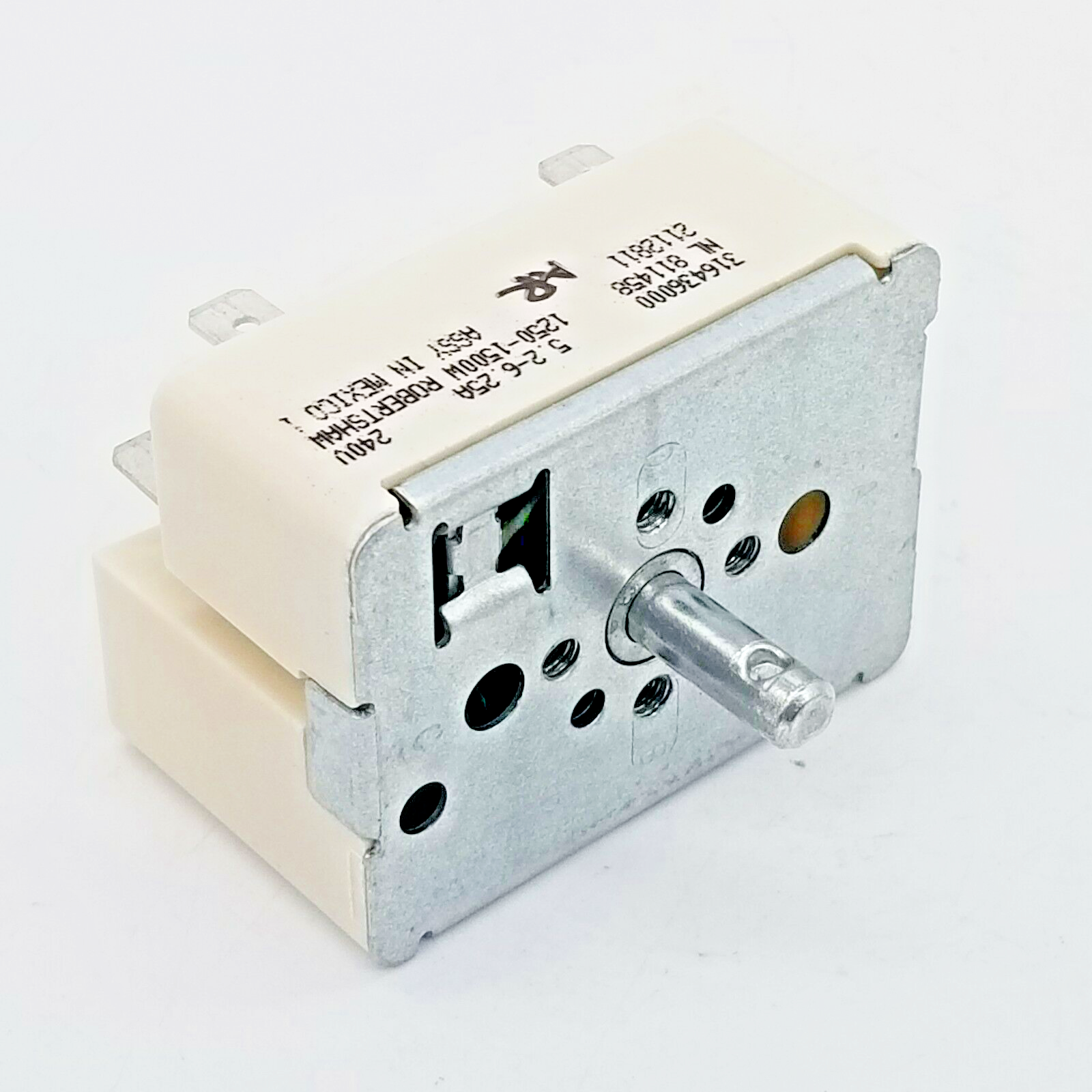 Boost your range's performance with this 6-inch OEM Replacement Surface Element Switch. This important part controls the stovetop burner, providing accurate heat control for cooking. If your stovetop doesn't turn on or adjust the heat properly, it's time to change the burner switch.