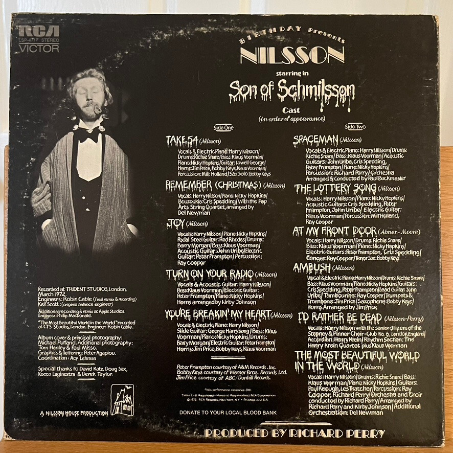 The album cover features a photograph of Nilsson (dressed as a Dracula-like vampire) taken by Michael Putland at George Harrison?s home Friar Park.