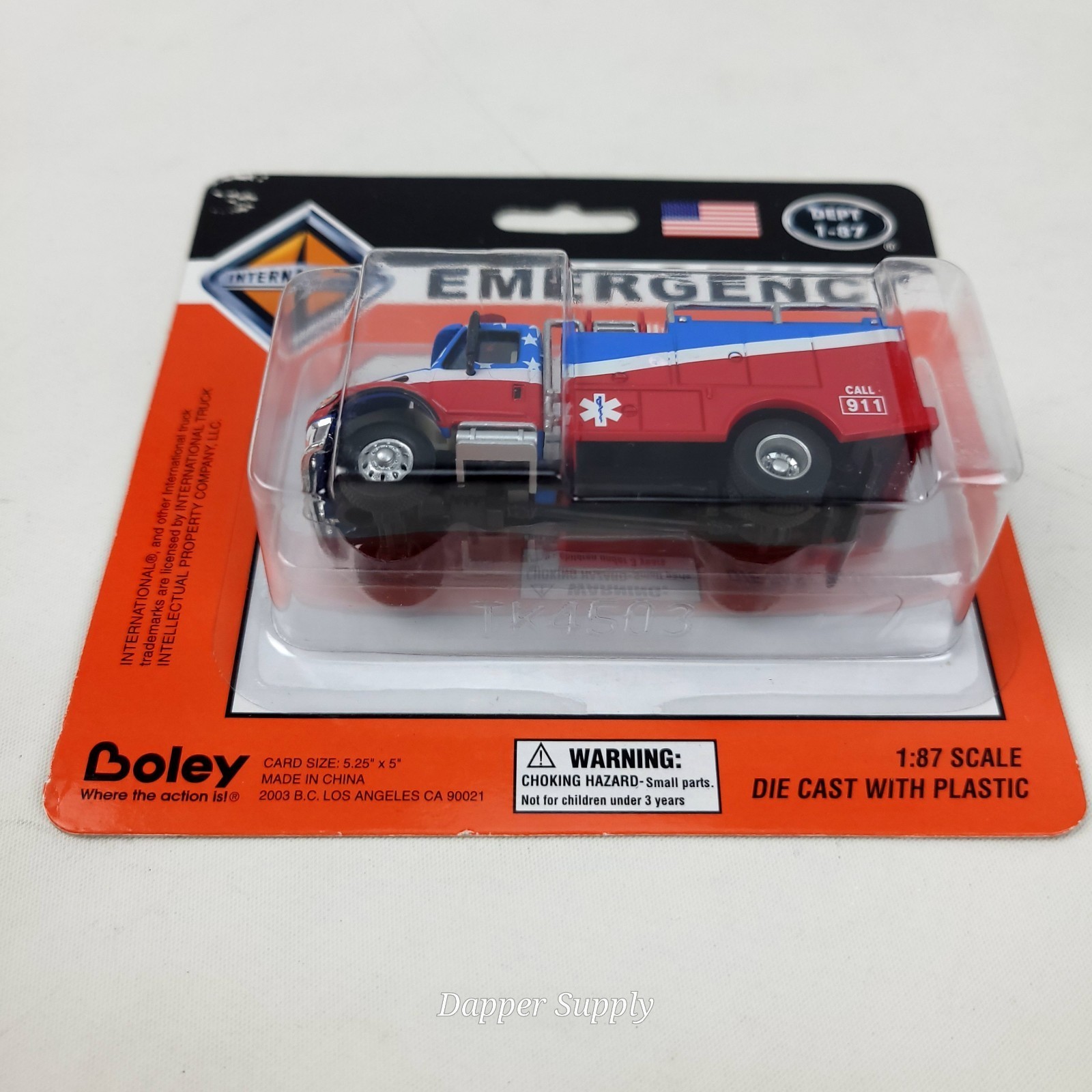 Bokey 1/87 Ho Scale Emergency Brush Truck Red White & Blue W/ Ems Star 4503-12