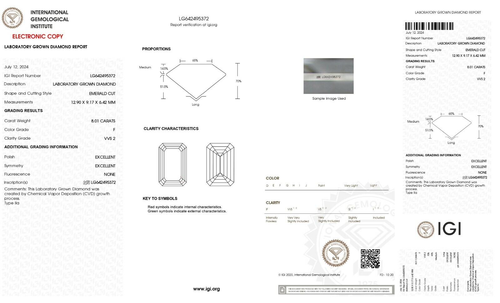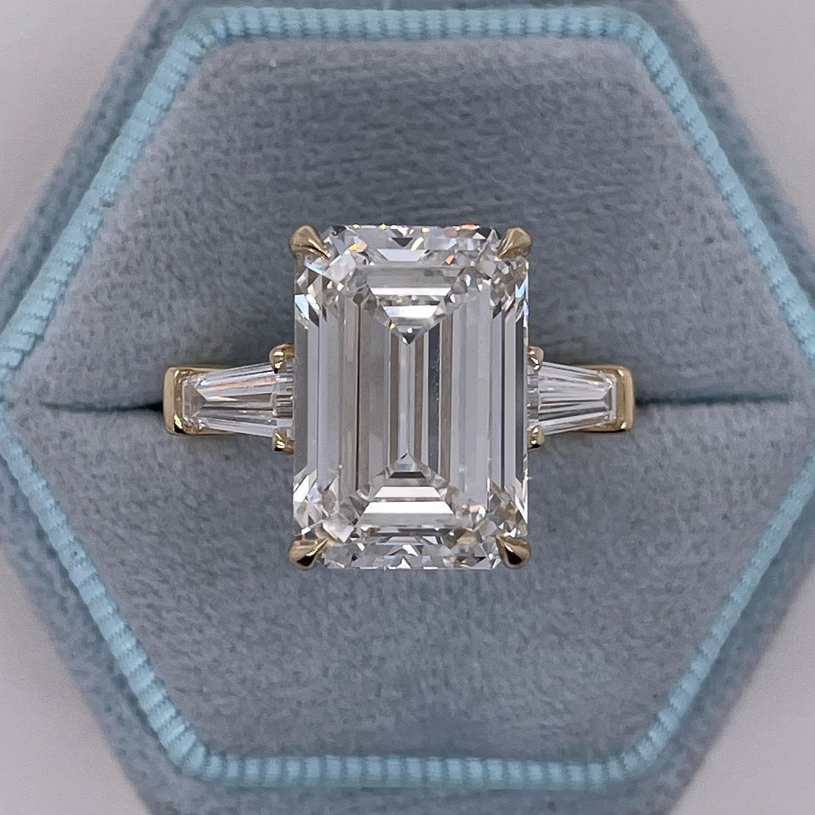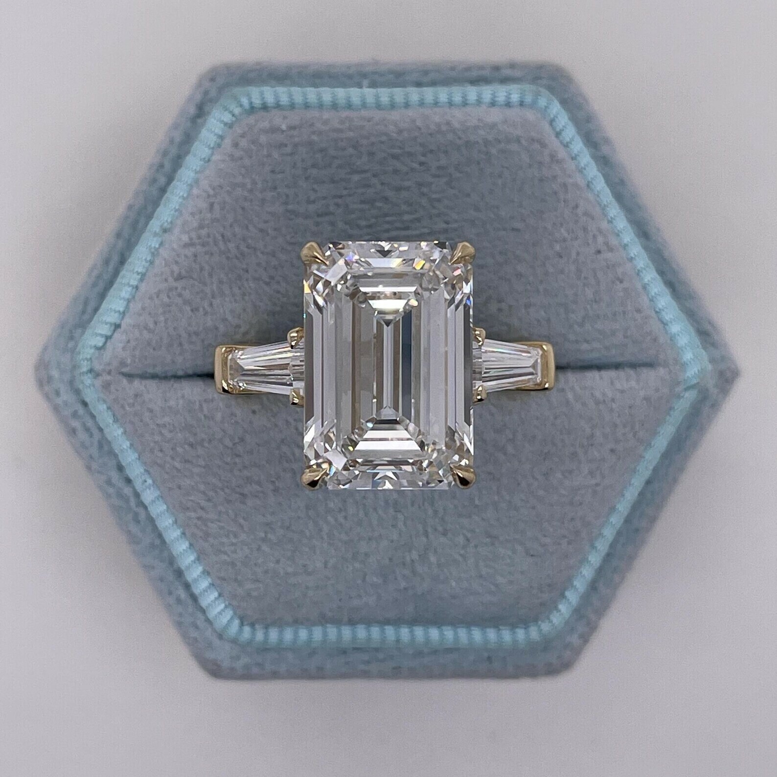 Lab Grown Huge 9.00 Carat IGI Certified F Color VVS2 Emerald Cut Diamond Ring