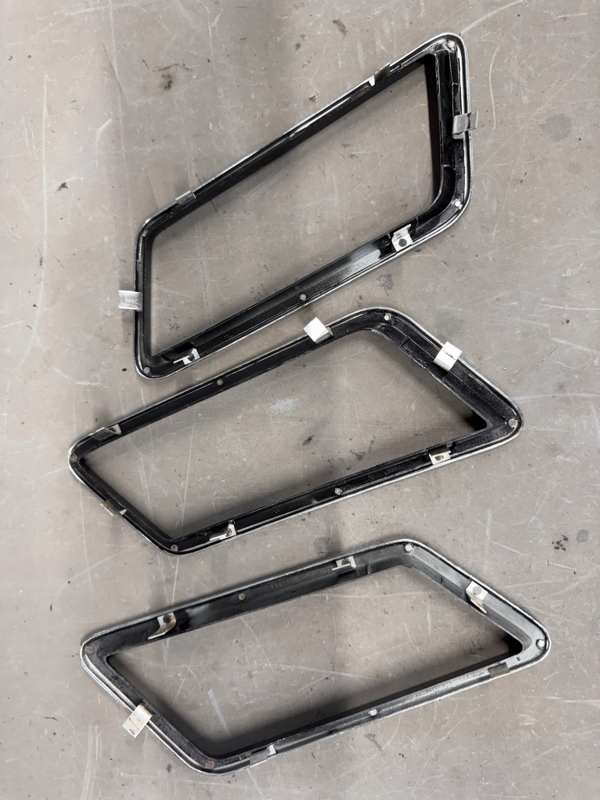 Nice driver quality original factory sail/quarter window bezels for 74-76 Grand Torino Elite