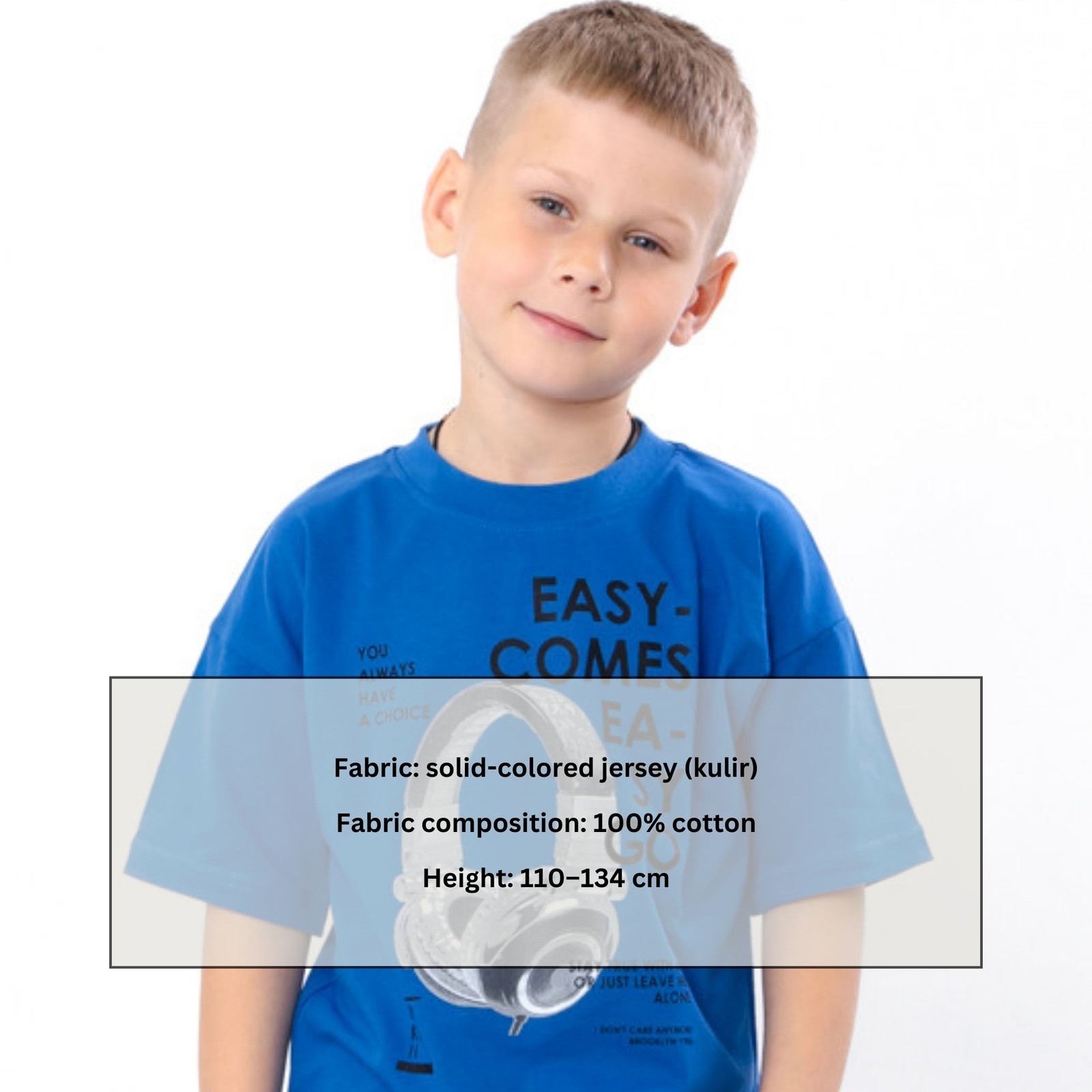 This T-shirt is a great choice for active boys who value comfort and style. Made from natural kulir fabric (100% cotton), it's soft on the skin, breathable, and retains its shape after washing. The classic cut with short sleeves and a round neckline provides freedom of movement.