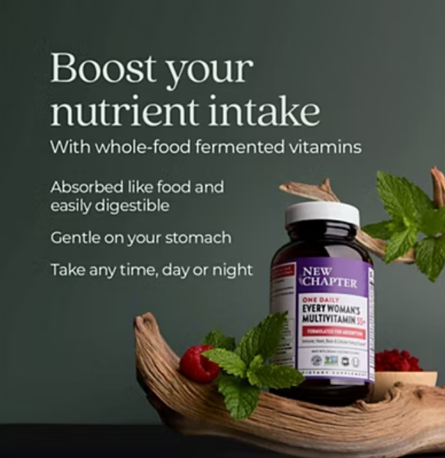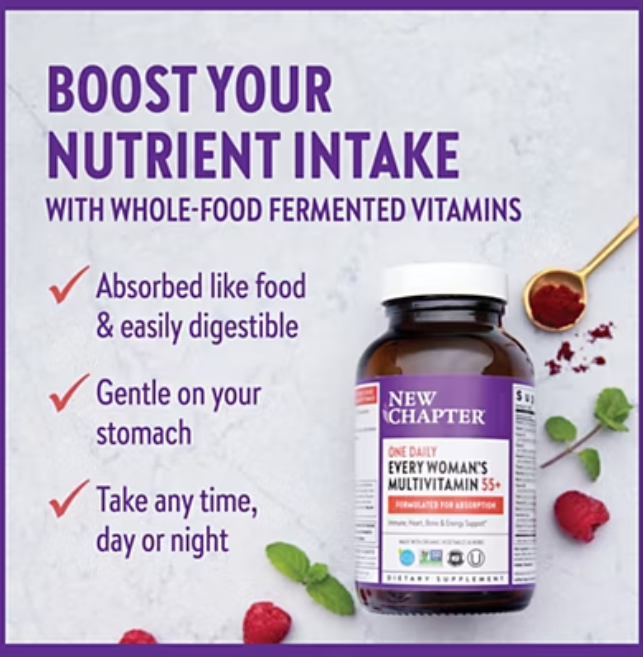 50-PLUS WOMEN'S MULTIVITAMINS: Absorb the natural goodness of whole-food fermented nutrients formulated for your body to recognize as food ENERGY IMMUNE SUPPORT: Designed to support women's needs after 50, including cellular energy metabolism, brain health, cardiovascular healthy blood pressure support, and immune health,* with Astaxanthin ONE DAILY: Can be taken any time of day?complete fermented multivitamin is easy to digest and gentle even on an empty stomach. No nausea THE FERMENTED ADVANTAGE: New Chapter ferments key vitamins and minerals with probiotics and formulates our blends for optimal absorption Made with Certified Organic Vegetables Herbs, Non-GMO Project Verified, 100% Vegetarian, Certified Kosher, Certified Gluten-Free by NSF, No Synthetic Fillers, Iron Free, Packaging may vary