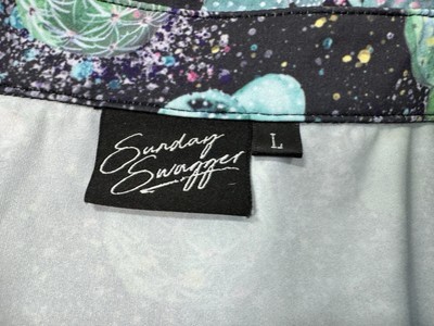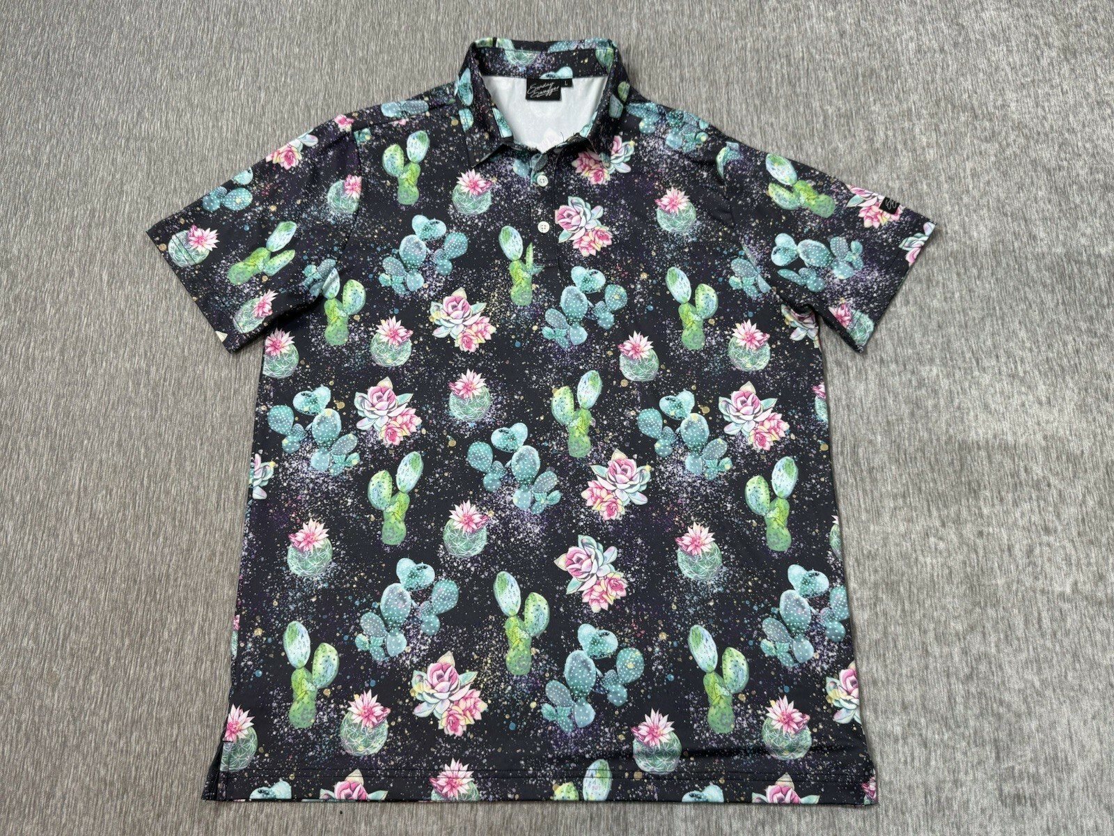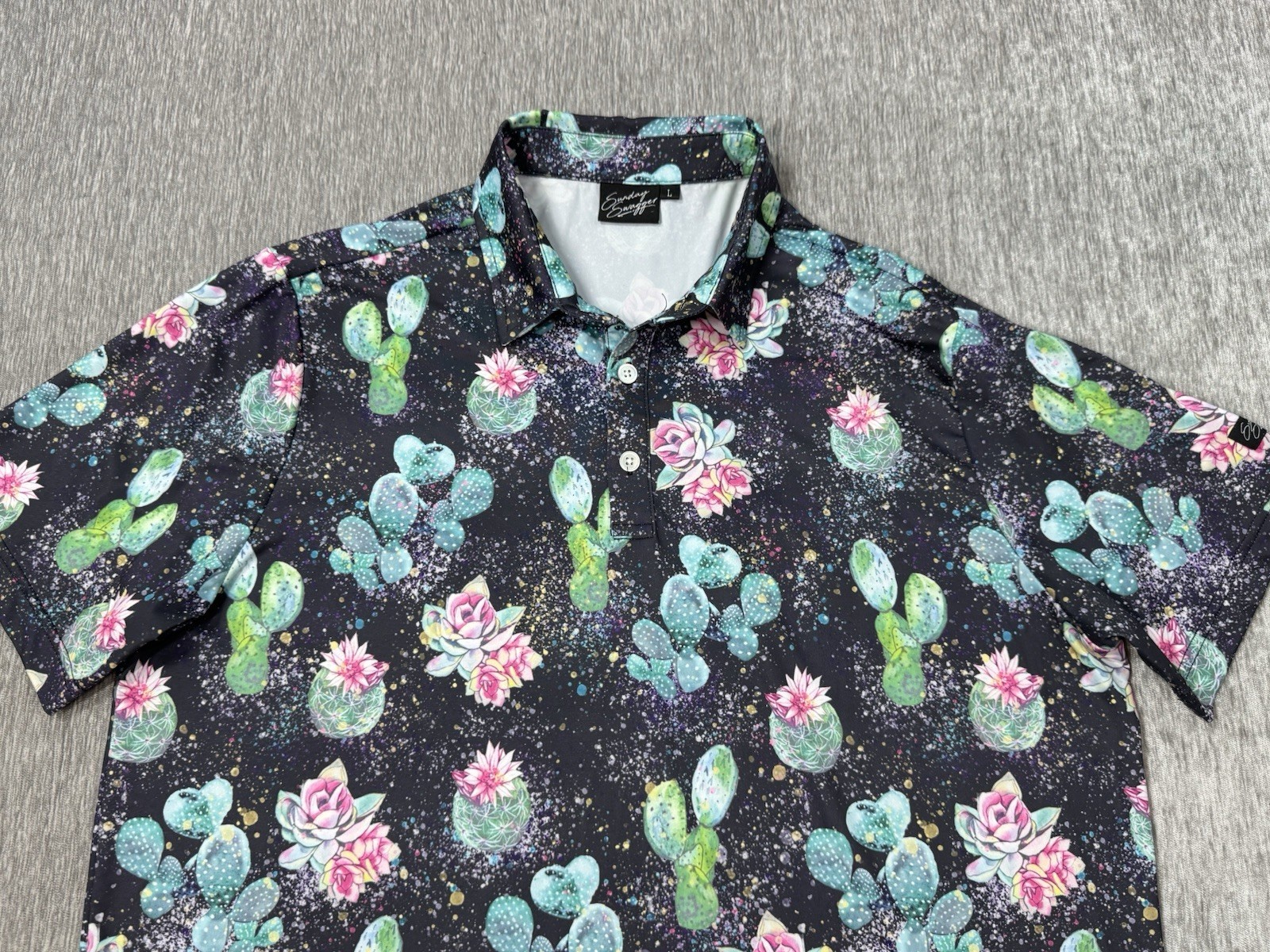 Sunday Swagger Polo Shirt Mens Large Black Cosmic Cactus Flower Golf Golfer