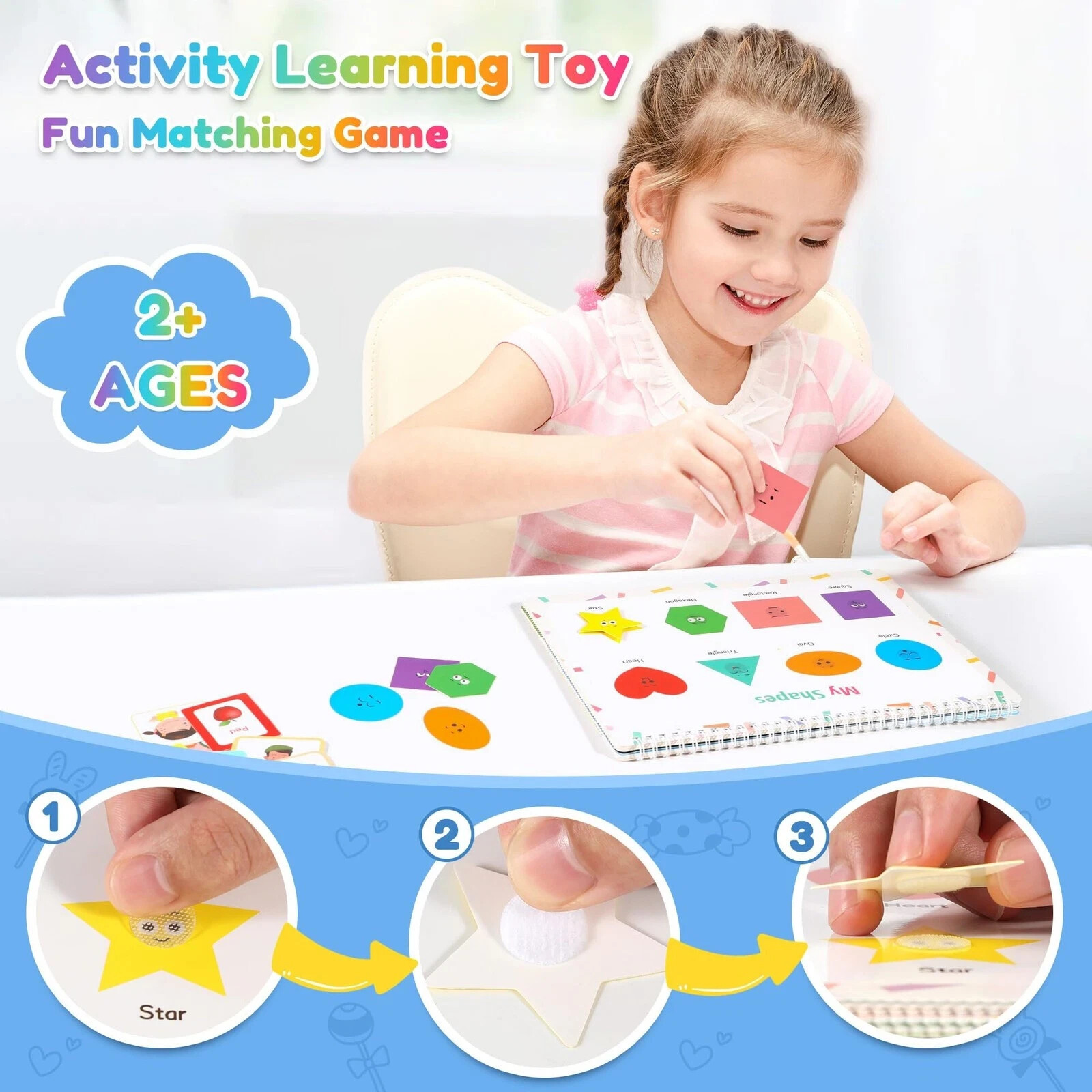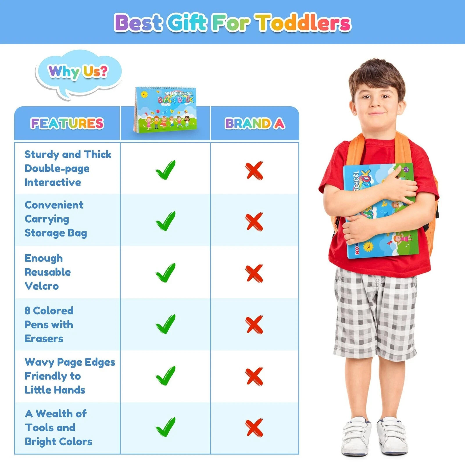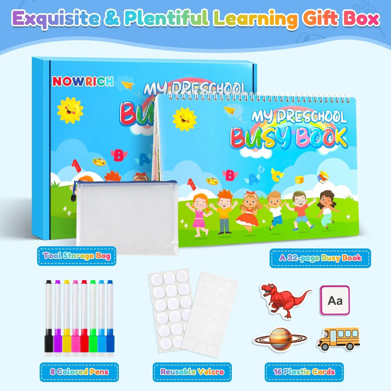 Preschool Learning Activities: Suitable for children over 3 years old. It is a convenient educational learning resource tool that can be used right out of the box. It contains enough reusable Velcro, 8 colored pens with erasers, 16 packs of small cards, and a storage bag. Kids can put things in the bag and take them anywhere. Kids will love this vibrant design, printed on high-quality thick card stock and featuring a sturdy plastic spring binding. Perfect busy book for toddlers 3-5 4-8