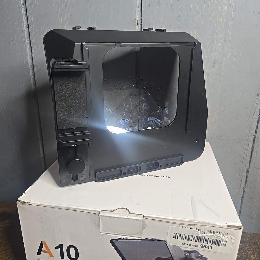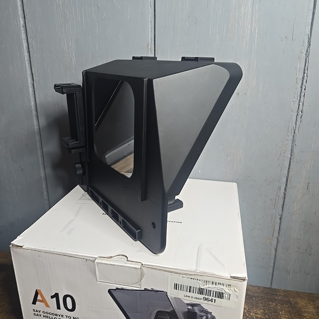 The A10 10-inch Camera Teleprompter is a versatile tool suitable for DSLR cameras, smartphones, and tablets, designed to enhance your live streaming and video recording experiences. It boasts a wide-angle lens capability, ensuring a comprehensive view of your surroundings, ideal for capturing high-quality footage.