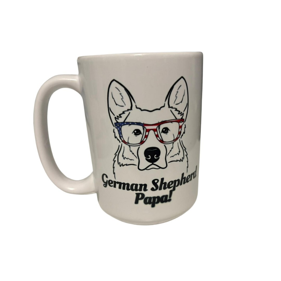 German Shepherd Papa Coffee Mug Dog Lover Gift Idea Father's Day Patriotic Glass