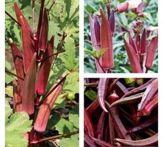 KBS 50 Seeds Red Burgundy Okra Seeds Non Gmo Heirloom Home Garden