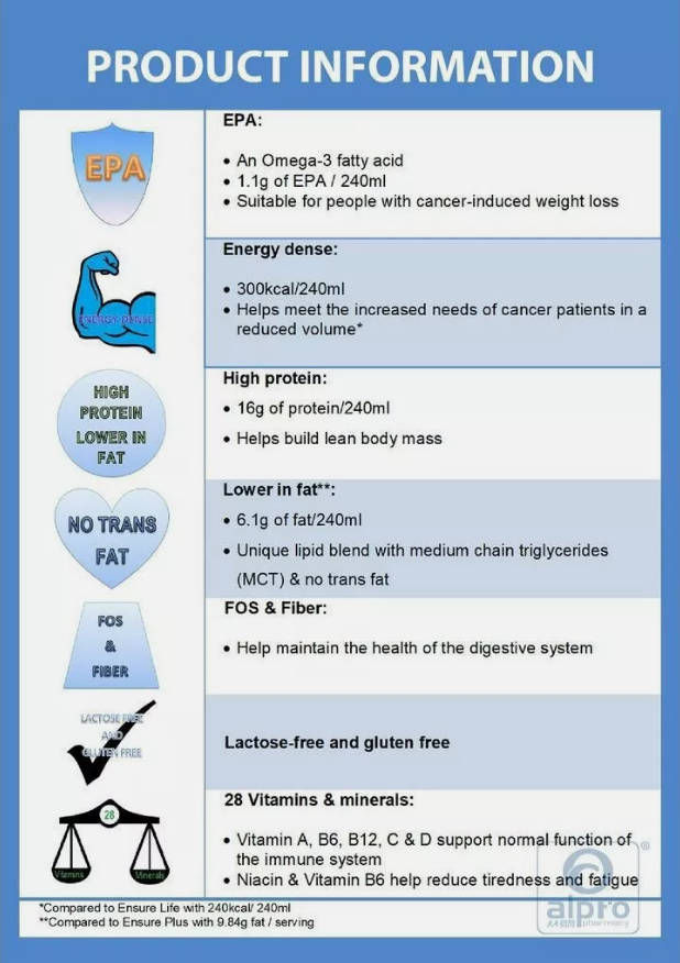 Prosure is scientifically designed to help you gain weight and increase energy while on chemotherapies. It is an energy-dense, high-protein formula enriched with EPA, designed to help normalize metabolism and build lean body mass (LBM) in people experiencing cancer-induced weight loss.